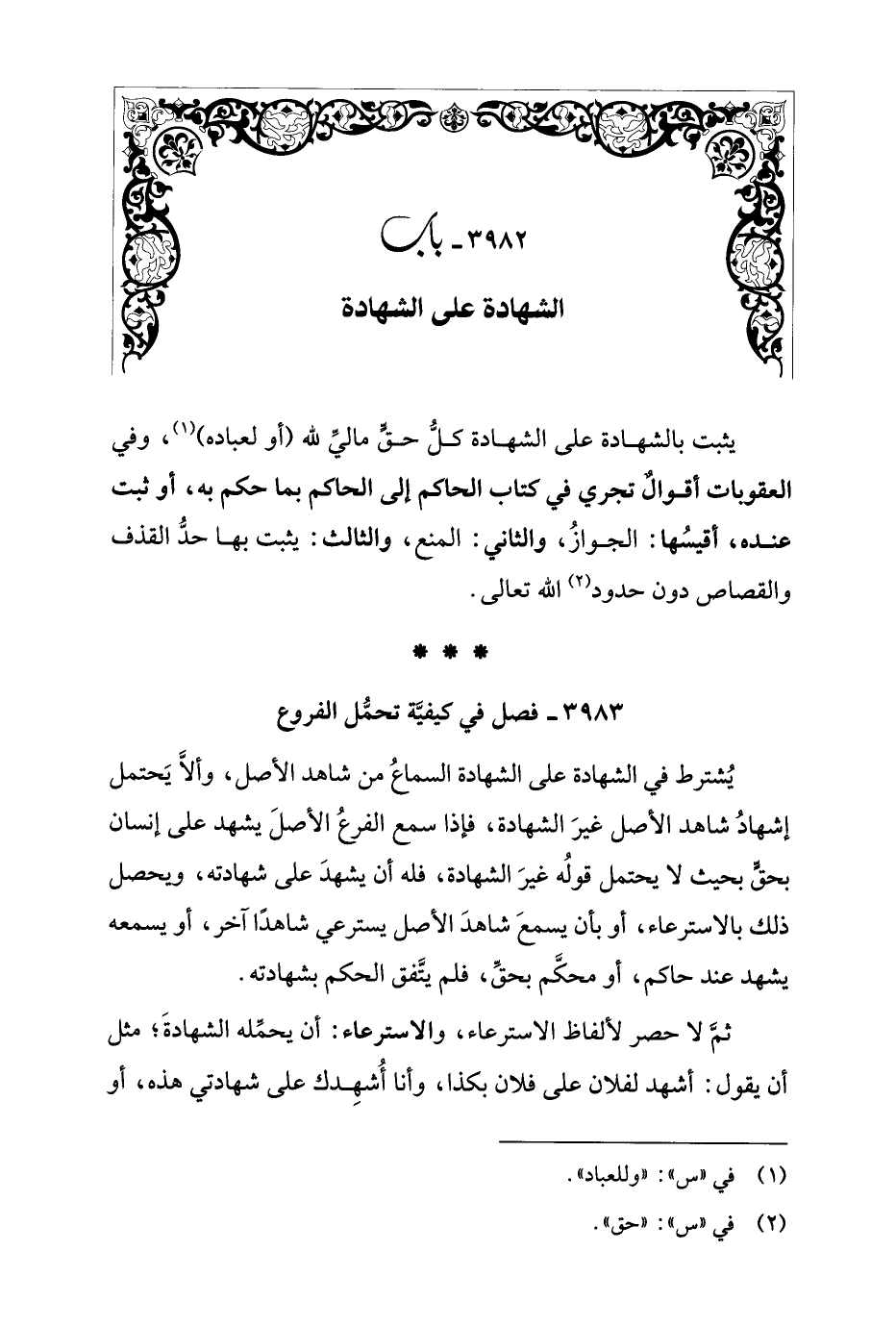 3983 - فصل في كيفيَّة تحمُّل الفروع