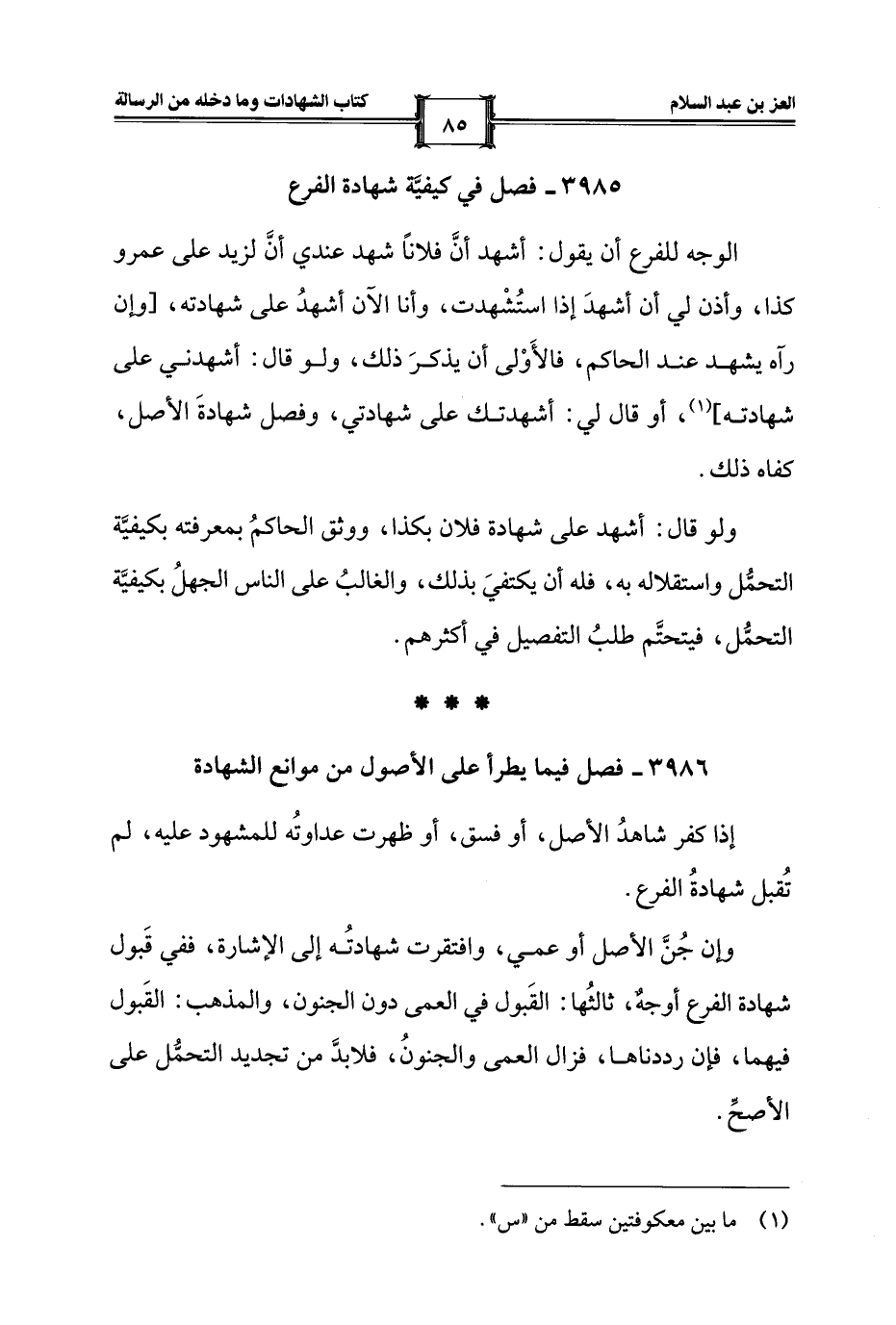 3985 - فصل في كيفيَّة شهادة الفرع