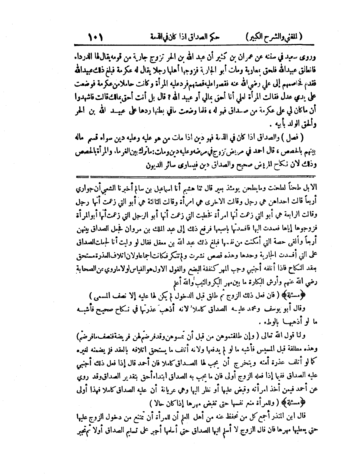 الإبل طحناً لطحنت وما يطحن يومئذ بعير قال ثنا هشيم أنا إسماعيل بن سالم أخبرنا الشعبي أن جواري أربعا قالت احداهن هي رجل وقالت الأخرى هي امرأة وقالت الثالثة هي أبوالتي زعمت أنها رجل وقالت الرابعة هي أبوالتي زعمت أنها امرأة فخطبت التي زعمت أنها أبو الرجل التي زعمت أنها أبو المرأة فزوجوها إياها فعمدت إليها فافسدتها باصبعها فرفع ذلك إلى عبد الملك بن مروان فجعل الصداق بينهن أربعاً وألقي حصة التي أمكنت من نفسها فبلغ ذلك عبد الله بن معقل فقال لو وليت أنا لجعلت الصداق على التي أفسدت الجارية وحدها وهذه قصص نشرت ولم تنكر فكانت إجماعاً ولأن اتلاف العذرة مستحق بعقد النكاح فإذا أتلفه أجنبي وجب المهر كنفقة البضع والقول الأول هو القياس لولا ما روي عن الصحابة رضي الله عنهم وأرش البكارة ما بين مهر البكر والثيب والله أعلم * (مسألة) * (فان فعل ذلك الزوج ثم طلق قبل الدخول لم يكن لها عليه إلا نصف المسمى) وقال أبو يوسف ومحمد عليه الصداق كاملاً لأنه أذهب عذرتها في نكاح صحيح فأشبه ما لو أذهبها بالوطئ.