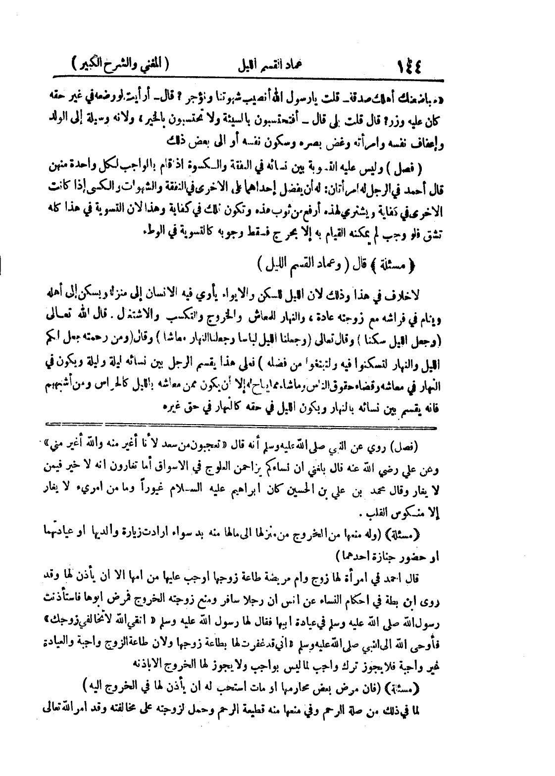 فأوحى الله إلى النبي صلى الله عليه وسلم " إني قد غفرت لها بطاعة زوجها ولأن طاعة الزوج واجبة والعيادة غير واجبة فلا يجوز ترك واجب لما ليس بواجب ولا يجوز لها الخروج إلا بإذنه * (مسألة) * (فإن مرض بعض محارمها أو مات استحب له أن يأذن لها في الخروج إليه) لما في ذلك من صلة الرحم وفي منعها منه قطيعة الرحم وحمل لزوجته على مخالفته وقد أمر الله تعالى