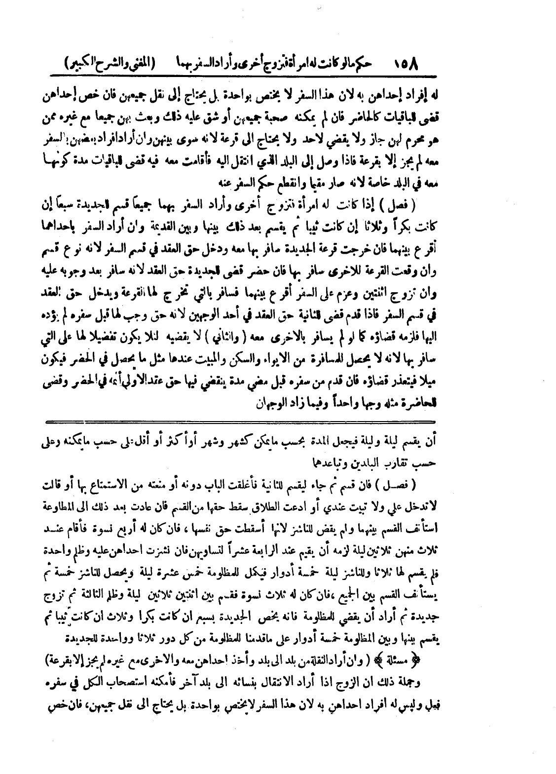 أن يقسم ليلة وليلة فيجعل المدة بحسب ما يمكن كشهر وشهر أو أكثر أو أقل على حسب ما يمكنه وعلى حسب تقارب البلدين وتباعدهما (فصل) فإن قسم ثم جاء ليقسم للثانية فأغلقت الباب دونه أو منعته من الاستمتاع بها أو قالت لا تدخل علي ولا تبيت عندي أو ادعت الطلاق سقط حقها من القسم فإن عادت بعد ذلك إلى المطاوعة