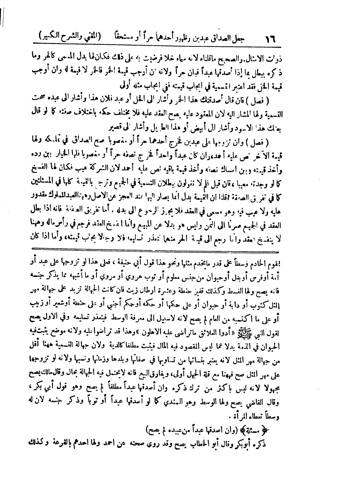 الحيوان في الذمة بدلاً عما ليس المقصود فيه المال فيثبت مطلقاً كالدية ولأن جهالة التسمية ههنا أقل من جهالة مهر المثل لأنه يعتبر بنسائها من تساويها في صفاتها وبلدها وزمانها ونسبها ولأنه لو تزوجهما على مهر المثل صح فههنا مع قلة الجهل أولى، ويفارق البيع فإنه لا يحتمل فيه الجهالة بحال وقال مالك يصح مجهولا لأنه ليس بأكثر من ترك ذكره وإن أصدقها عبداً مطلقاً لم يصح وهو قول أبي بكر، وقال القاضي يصح ولها الوسط وهو السندي كما لو أصدقها عبداً أو ثوباً وذكر جنسه لأن له وسطاً تعطاه المرأة.