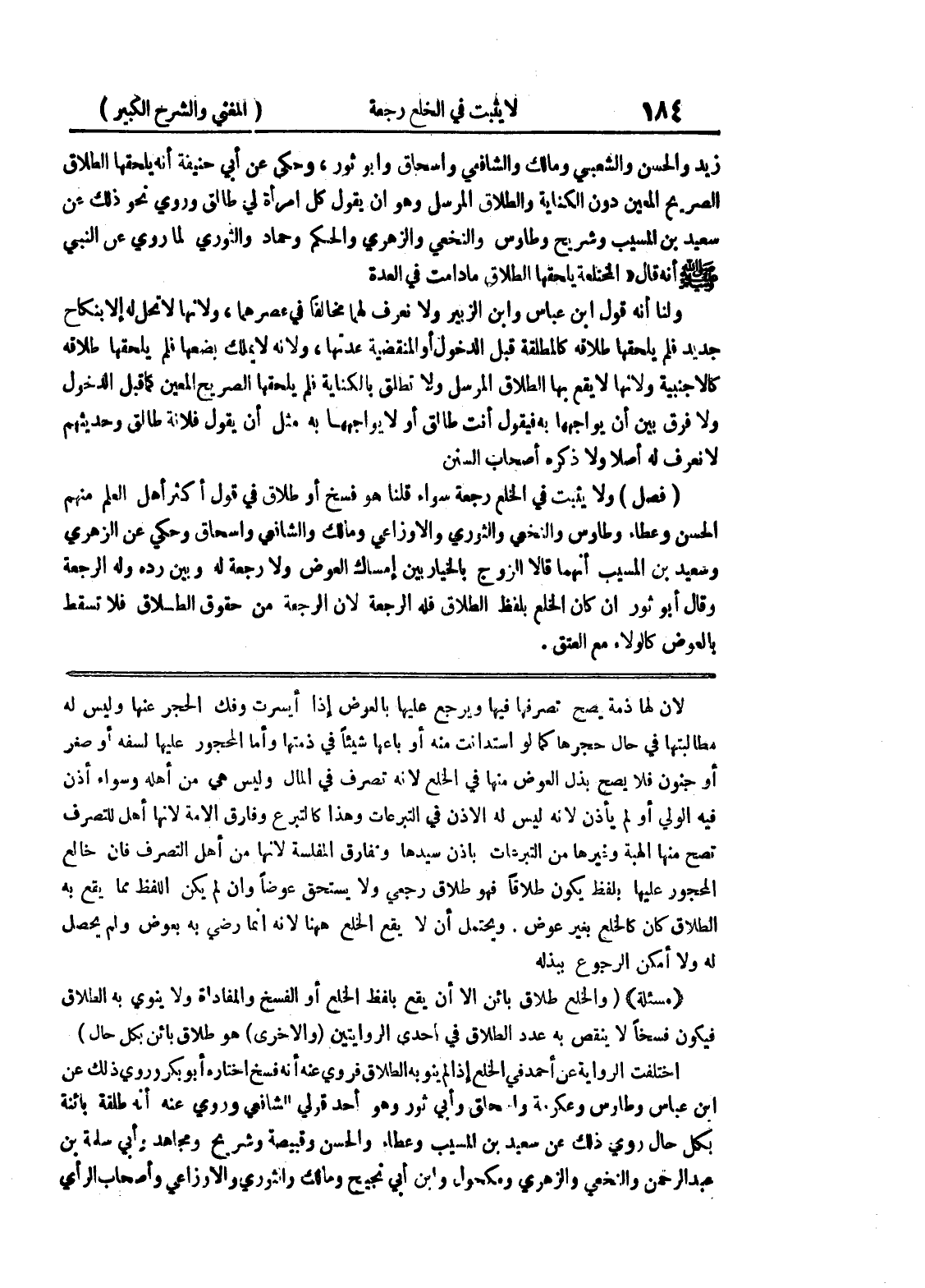 ويحتمل أن لا يقع الخلع ههنا لأنه إنما رضي به بعوض ولم يحصل له ولا أمكن الرجوع ببذله * (مسألة) * (والخلع طلاق بائن إلا أن يقع بلفظ الخلع أو الفسخ والمفاداة ولا ينوي به الطلاق فيكون فسخاً لا ينقص به عدد الطلاق في إحدى الروايتين (والأخرى) هو طلاق بائن بكل حال) اختلفت الرواية عن أحمد في الخلع إذا لم ينو به الطلاق فروي عنه أنه فسخ اختاره أبو بكر وروي ذلك عن ابن عباس وطاوس وعكرمة واسحاق وأبي ثور وهو أحد قولي الشافعي وروي عنه أنه طلقة بائنة بكل حال روى ذلك عن سعيد بن المسيب وعطاء والحسن وقبيصة وشريح ومجاهد وأبي سلمة بن عبد الرحمن والنخعي والزهري ومكحول وابن أبي نجيح ومالك والثوري الأوزاعي وأصحاب الرأي