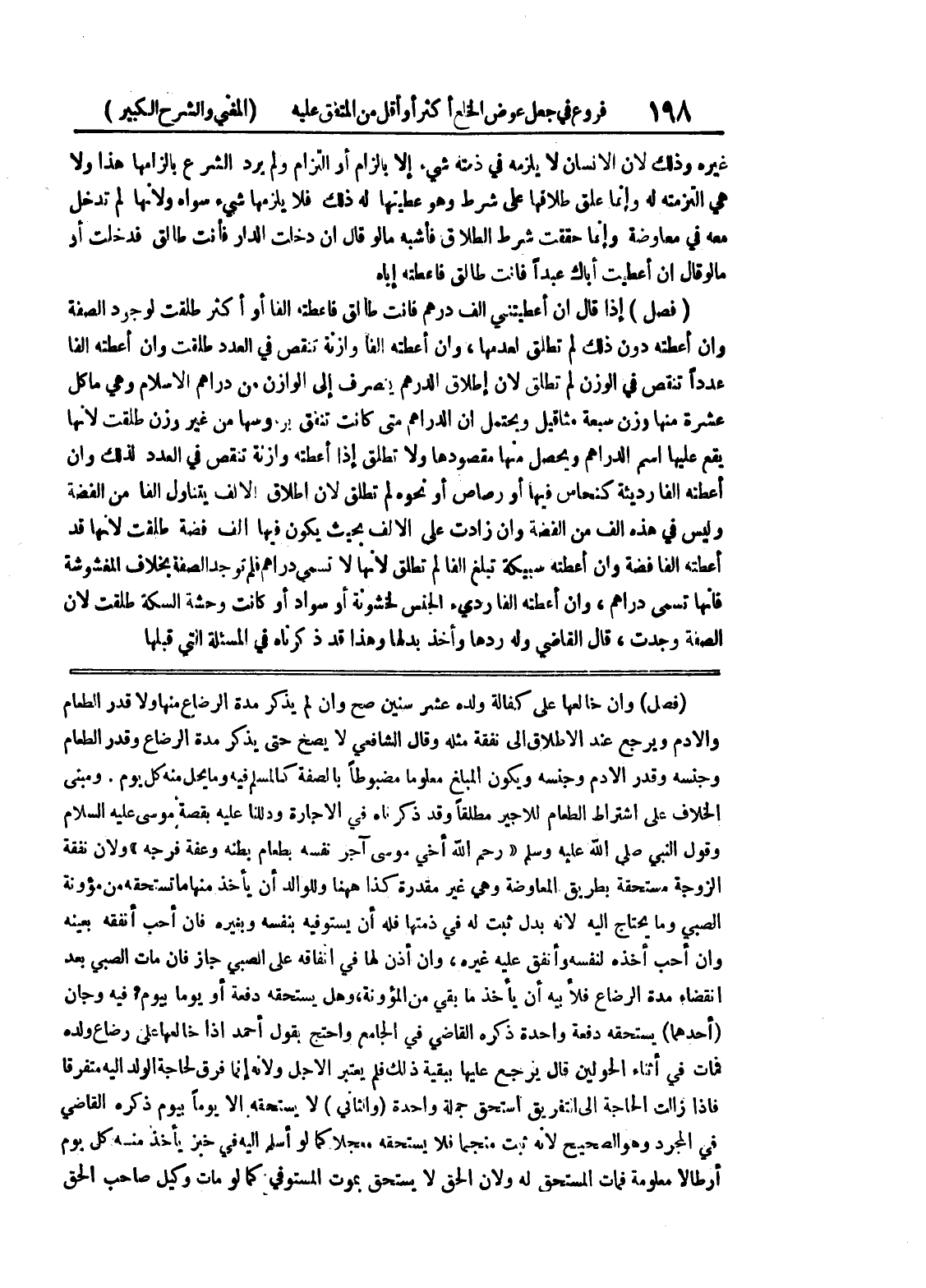 (فصل) وإن خالعها على كفالة ولده عشر سنين صح وإن لم يذكر مدة الرضاع منها ولا قدر الطعام والادم ويرجع عند الاطلاق إلى نفقة مثله وقال الشافعي لا يصح حتى يذكر مدة الرضاع وقدر الطعام وجنسه وقدر الادم وجنسه ويكون المبلغ معلوماً مضبوطاً بالصفة كالمسلم فيه وما يحل منه كل يوم.