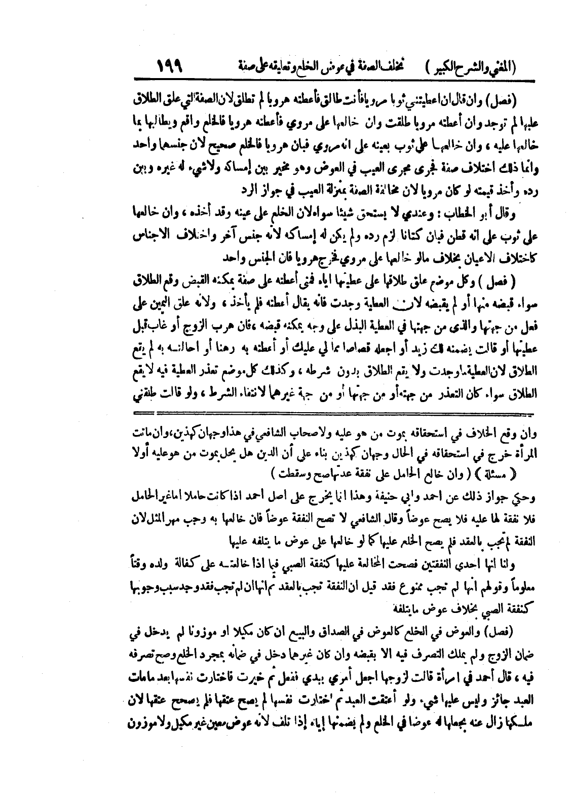 وإن وقع الخلاف في استحقاقه بموت من هو عليه ولأصحاب الشافعي في هذا وجهان كهذين، وإن ماتت المرأة خرج في استحقاقه في الحال وجهان كهذين بناء على أن الدين هل يحل بموت من هو عليه أولا * (مسألة) * (وإن خالع الحامل على نفقة عدتها صح وسقطت) وحكي جواز ذلك عن أحمد وابي حنيفة وهذا إنما يخرج على أصل أحمد إذا كانت حاملاً أما غير الحامل فلا نفقة لها عليه فلا يصح عوضا وقال الشافعي لا تصح النفقة عوضا فان خالعها به وجب مهر المثل لأن النفقة لم تجب بالعقد فلم يصح الخلع عليها كما لو خالعها على عوض ما يتلفه عليها ولنا أنها إحدى النفقتين فصحت المخالعة عليها كنفقة الصبي فيما إذا خالعته على كفالة ولده وقتاً معلوماً وقولهم أنها لم تجب ممنوع فقد قيل ان النفقة تجب بالعقد ثم انها إن لم تجب فقد وجد سبب وجوبها كنفقة الصبي بخلاف عوض ما يتلفه (فصل) والعوض في الخلع كالعوض في الصداق والبيع إن كان مكيلا أو موزونا لم يدخل في