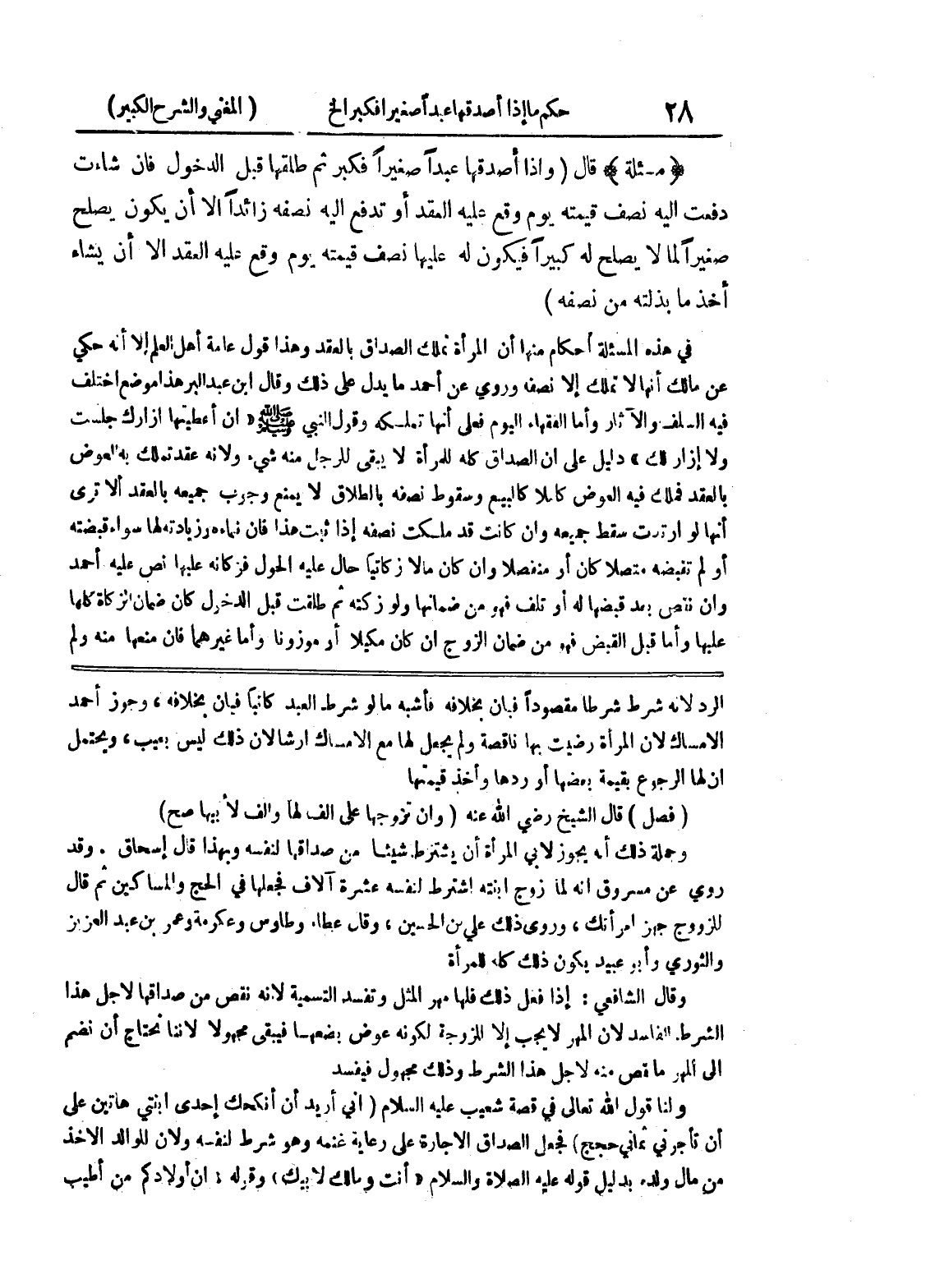 وقد روي عن مسروق انه كما زوج ابنته اشترط لنفسه عشرة آلاف فجعلها في الحج والمساكين ثم قال للزوج جهز امرأتك، وروي ذلك علي بن الحسين، وقال عطاء وطاوس وعكرمة وعمر بن عبد العزيز والثوري وأبو عبيد يكون ذلك كله للمرأة وقال الشافعي: إذا فعل ذلك فلها مهر المثل وتفسد التسمية لأنه نقص من صداقها لأجل هذا الشرط الفاسد لأن المهر لا يجب إلا للزوجة لكونه عوض بضعها فيبقى مجهولا لأننا نحتاج أن نضم إلى المهر ما قص منه لأجل هذا الشرط وذلك مجهول فيفسد ولنا قول الله تعالى في قصة شعيب عليه السلام (إني أريد أن أنكحت إحدى ابنتي هاتين على أن تأجرني ثماني حجج) فجعل الصداق الإجارة على رعاية غنمه وهو شرط لنفسه ولان الموالد الأخذ من مال ولده بدليل قوله عليه الصلاة والسلام " أنت ومالك لأبيك " وقوله " إن أولادكم من أطيب