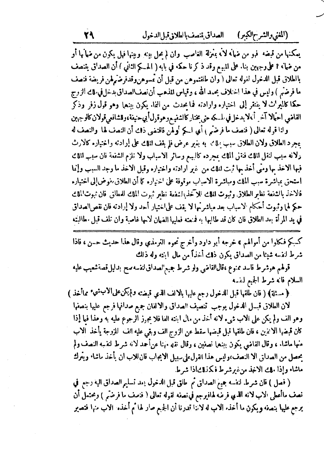 ما شاء وإذا ملك الأخذ من غير شرط فكذلك إذا شرط (فصل) فإن شرط لنفسه جميع الصداق ثم طلق قبل الدخول يعد تسليم الصداق إليه رجع في نصف ما أعطى الأب لأنه الذي فرضه لها فيرجع في نصفه لقوله تعالى (فنصف ما فرضتم) ويحتمل أن يرجع عليها بنصفه ويكون ما أخذه الأب له لأننا قدرنا أن الجميع صار لها ثم أخذه الأب منها فتصير