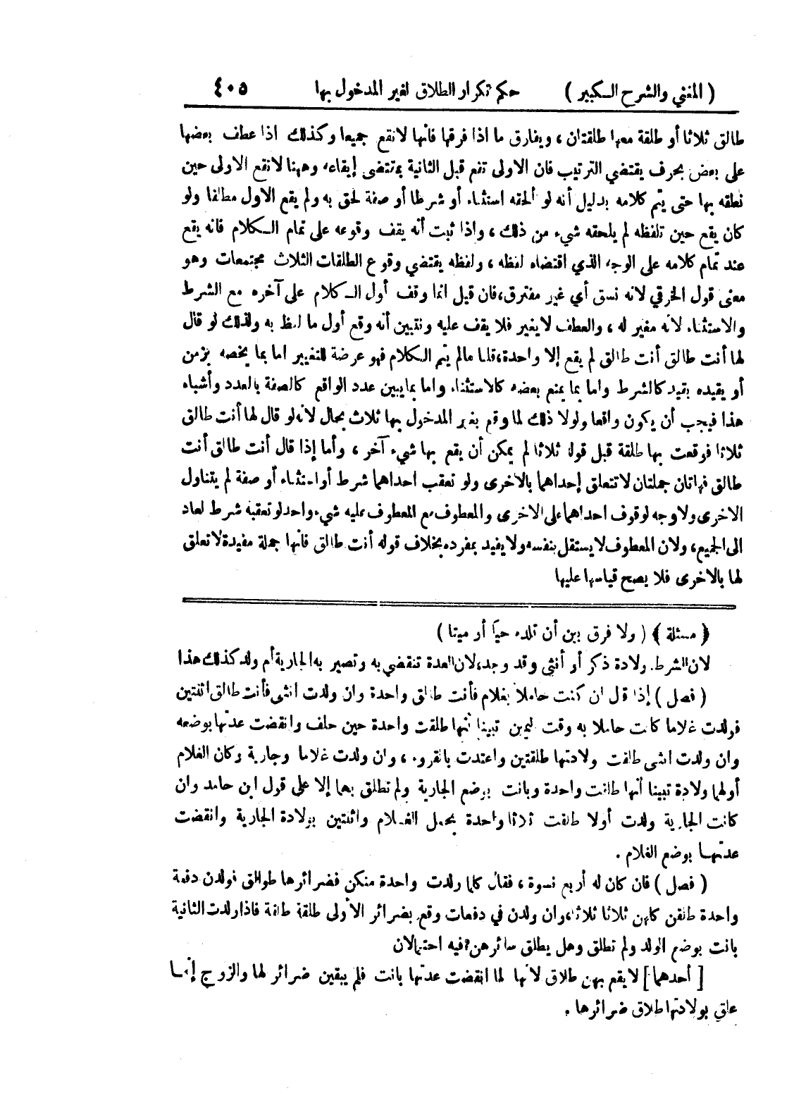 * (مسألة) * (ولا فرق بين أن تلده حياً أو ميتاً) لان الشرط ولادة ذكر أو أنثى وقد وجد، لأن العدة تنقضي به وتصير به الجارية أم ولد كذلك هذا (فصل) إذا قال إن كنت حاملاً بغلام فأنت طالق واحدة وإن ولدت أنثى فأنت طالق اثنتين فولدت غلاماً كانت حاملاً به وقت اليمين تبينا أنها طلقت واحدة حين حلف وانقضت عدتها بوضعه وإن ولدت أنثى طلقت ولادتها طلقتين واعتدت بالقروء، وان ولد غلاماً وجارية وكان الغلام أولهما ولادة تبينا أنها طلقت واحدة وبانت بوضع الجارية ولم تطلق بهما إلا على قول ابن حامد وإن كانت الجارية ولدت أولاً طلقت ثلاثاً واحدة بحمل الغلام واثنتين بولادة الجارية وانقضت عدتها بوضع الغلام.