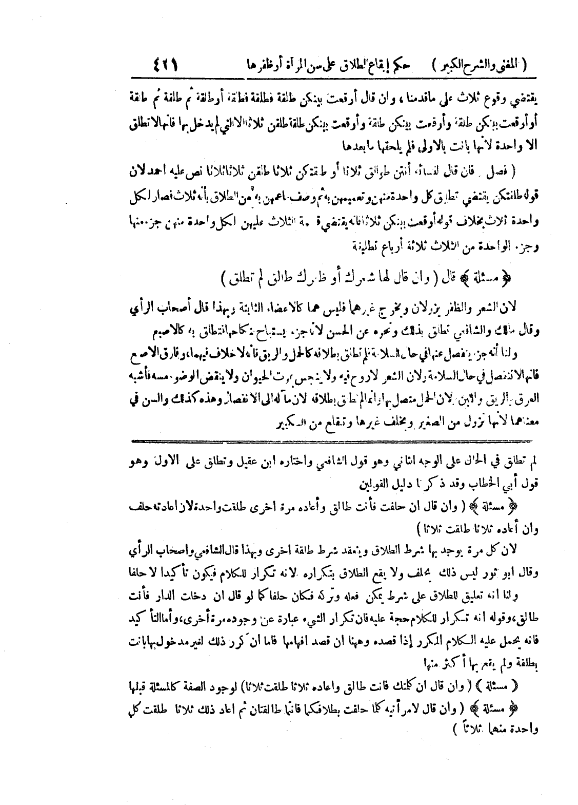 لم تطلق في الحال على الوجه الثاني وهو قول الشافعي واختاره ابن عقيل وتطلق على الأول وهو قول أبي الخطاب وقد ذكرنا دليل القولين * (مسألة) * (وإن قال ان حلفت فأنت طالق وأعاده مرة أخرى طلقت واحدة لان إعادته حلف وإن أعاده ثلاثاً طلقت ثلاثاً) لأن كل مرة يوجد بها شرط الطلاق وينعقد شرط طلقة اخرى وبهذا قال الشافعي وأصحاب الرأي وقال أبو ثور ليس ذلك بحلف ولا يقع الطلاق بتكراره لأنه تكرار للكلام فيكون تأكيداً لا حلفاً ولنا أنه تعليق للطلاق على شرط يمكن فعله وتركه فكان حلفاً كما لو قال إن دخلت الدار فأنت طالق، وقوله أنه تكرار للكلام حجة عليه فإن تكرار الشئ عبارة عن وجوده مرة أخرى، وأما التأكيد فإنه يحمل عليه الكلام المكرر إذا قصده وههنا ان قصد إفهامها فاما أن كرر ذلك لغير مدخول بها بانت بطلقة ولم يقع بها أكثر منها * (مسألة) * (وإن قال ان كلمتك فأنت طالق وأعاده ثلاثا طلقت ثلاثا) لوجود الصفة كالمسألة قبلها * (مسألة) * (وإن قال لامرأتيه كلما حلقت بطلاقكما فأنتما طالقتان ثم أعاد ذلك ثلاثا طلقت كل واحدة منهما ثلاثاً)