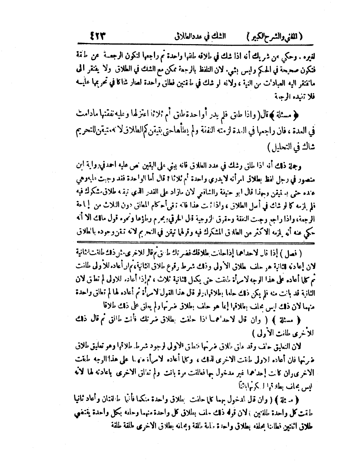 (فصل) إذا قال لإحداهما إذا حلفت بطلاقك فضرتك طالق ثم قال للأخرى مثل ذلك طلقت الثانية لأن إعادته للثانية هو حلف بطلاق الأولى وذلك شرط وقوع طلاق الثانية، ثم ان أعادة للأولى طلقت ثم كلما أعاده على هذا الوجه لامرأة طلقت حتى يكمل للثانية ثلاث، ثم إذا أعاده للاولى لم تطلق لأن الثانية قد بانت منه فلم يكن ذلك حلفاً بطلاقها، ولو قال هذا القول لامرأة ثم أعاده لها لم تطلق واحدة منهما لأن ذلك ليس بحلف بطلاقها إنما هو حلف بطلاق ضرتها ولم يعلق على ذلك طلاقا * (مسألة) * (وإن قال لإحداهما إذا حلفت بطلاق ضرتك فأنت طالق ثم قال ذلك للأخرى طلقت الأولى) لأن التعليق حلف وقد علق طلاق ضرتها فتطلق الأولى لوجود شرط طلاقها وهو تعليق طلاق ضرتها فإن أعاده الاولى طلقت الأخرى لذلك، وكلما أعاده لامرأة منها على هذا الوجه طلقت الأخرى وإن كانت إحداهما غير مدخول بها فطلقت مرة بانت ولم تطلق الأخرى بإعادته لها لأنه ليس بحلف بطلاقهما لكونها بائناً * (مسألة) * (وإن قال لمدخول بهما كلما حلفت بطلاق واحدة منكما فأنتما طالقتان وأعاد ثانياً طلقت كل واحدة طلقتين) لأن قوله ذلك حلف بطلاق كل واحدة منهما وحلفه بكل واحدة يقتضي طلاق اثنتين فطلقتا بحلفة بطلاق واحدة طلقة طلقة وبحلفه بطلاق الاخرى طلقة طلقة