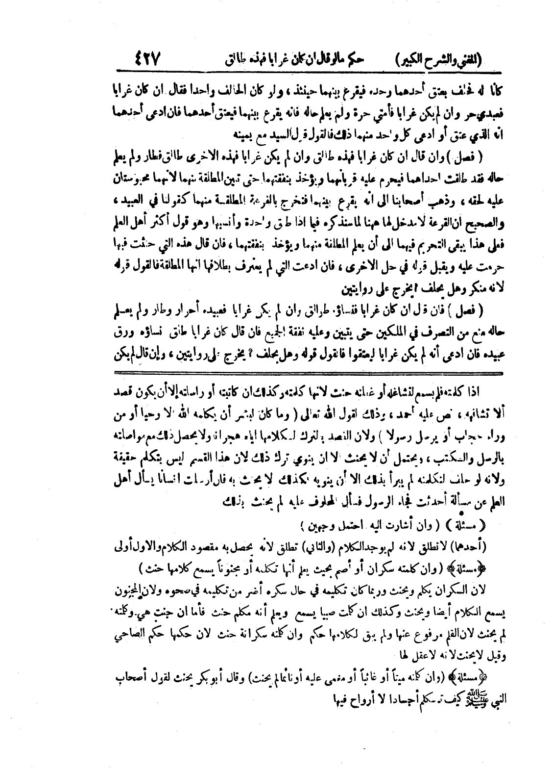 إذا كلمته فلم يسمع لتشاغله أو غفلته حنث لأنها كلمته وكذلك ان كاتبته أو راسلته إلا أن يكون قصد ألا تشافهه، نص عليه أحمد، وذلك لقول الله تعالى (وما كان لبشر أن يكلمه الله إلا وحيا أو من وراء حجاب أو يرسل رسولا) ولأن القصد بالترك لكلامها إياه هجرانا ولا يحصل ذلك مع مواصلته بالرسل والكتب، ويحتمل أن لا يحنث إلا أن ينوي ترك ذلك لأن هذا القسم ليس بتكلم حقيقة ولأنه لو حلف لتكلمنه لم يبرأ بذلك إلا أن ينويه فكذلك لا يحنث به فان أرسلت انسانا يسأل أهل العلم عن مسألة أحدثت فجاء الرسول فسأل المحلوف عليه لم يحنث بذلك * (مسألة) * (وإن أشارت إليه احتمل وجهين) (أحدهما) لا تطلق لأنه لم يوجد الكلام (والثاني) تطلق لأنه يحصل به مقصود الكلام والأول أولى * (مسألة) * (وإن كلمته سكران أو أصم بحيث يعلم أنها تكلمه أو مجنوناً يسمع كلامها حنث) لأن السكران يكلم ويحنث وربما كان تكليمه في حال سكره أضر من تكليمه في صحوه ولأن المجنون يسمع الكلام أيضاً ويحنث وكذلك أن كلمت صبيا يسمع ويعلم أنه مكلم حنث فأما إن جنت هي وكلمته.