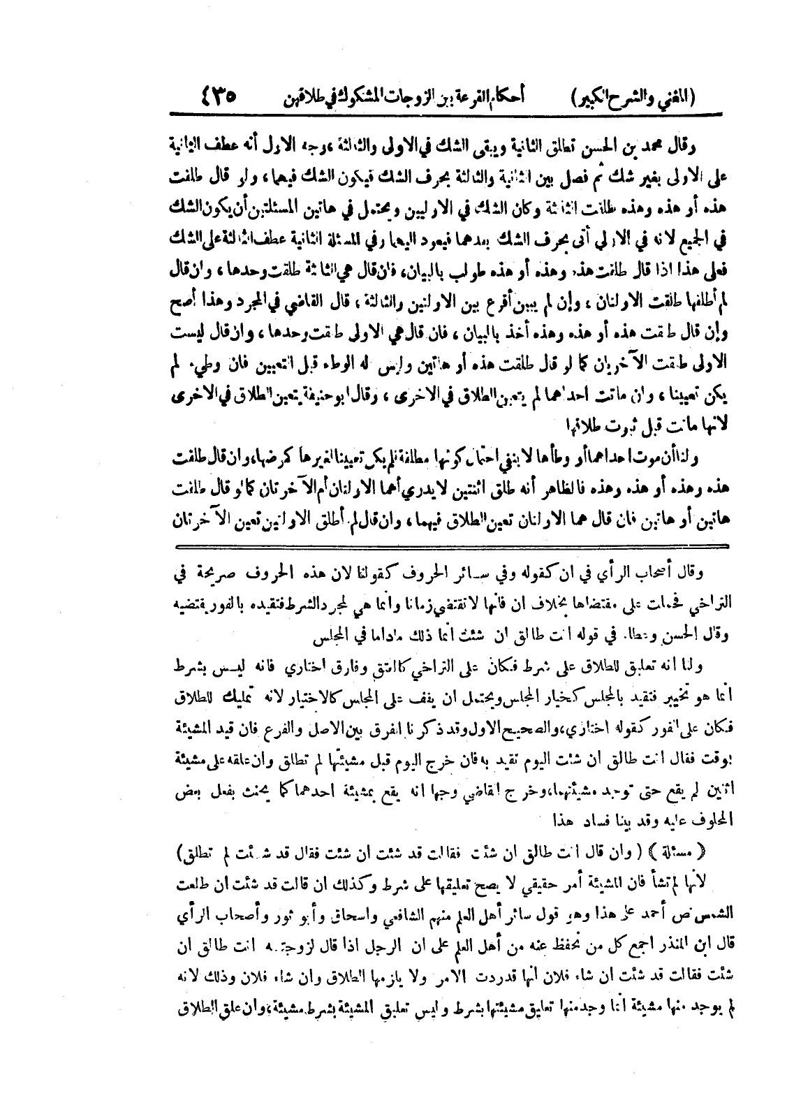 وقال أصحاب الرأي في ان كقوله وفي سائر الحروف كقولنا لأن هذه الحروف صريحة في التراخي فحملت على مقتضاها بخلاف ان فإنها لا تقتضي زمانا وإنما هي لمجرد الشرط فتقيده بالفور يقتضيه وقال الحسن وعطاء في قوله أنت طالق إن شئت انما ذلك ماداما في المجلس ولنا أنه تعليق للطلاق على شرط فكان على التراخي كالعتق وفارق اختاري فإنه ليس بشرط انما هو تخيبر فتقيد بالمجلس كخيار المجلس ويحتمل ان يفف على المجلس كالاختيار لأنه تمليك للطلاق فكان على الفور كقوله اختاري، والصحيح الأول وقد ذكرنا الفرق بين الأصل والفرع فإن قيد المشيئة بوقت ففال أنت طالق إن شئت اليوم تقيد به فإن خرج اليوم قبل مشيئتها لم تطلق وإن علقه على مشيئة اثنين لم يقع حتى توجد مشيئتهما، وخرج القاضي وجها أنه يقع بمشيئة أحدهما كما يحنث بفعل بعض المحلوف عليه وقد بينا فساد هذا * (مسألة) * (وإن قال أنت طالق إن شئت فقالت قد شئت ان شئت فقال قد شئت لم تطلق) لأنها لم تشأ فإن المشيئة أمر حقيقي لا يصح تعليقها على شرط وكذلك ان قالت قد شئت إن طلعت الشمس نص أحمد على هذا وهو قول سائر أهل العلم منهم الشافعي واسحاق وأبو ثور وأصحاب الرأي