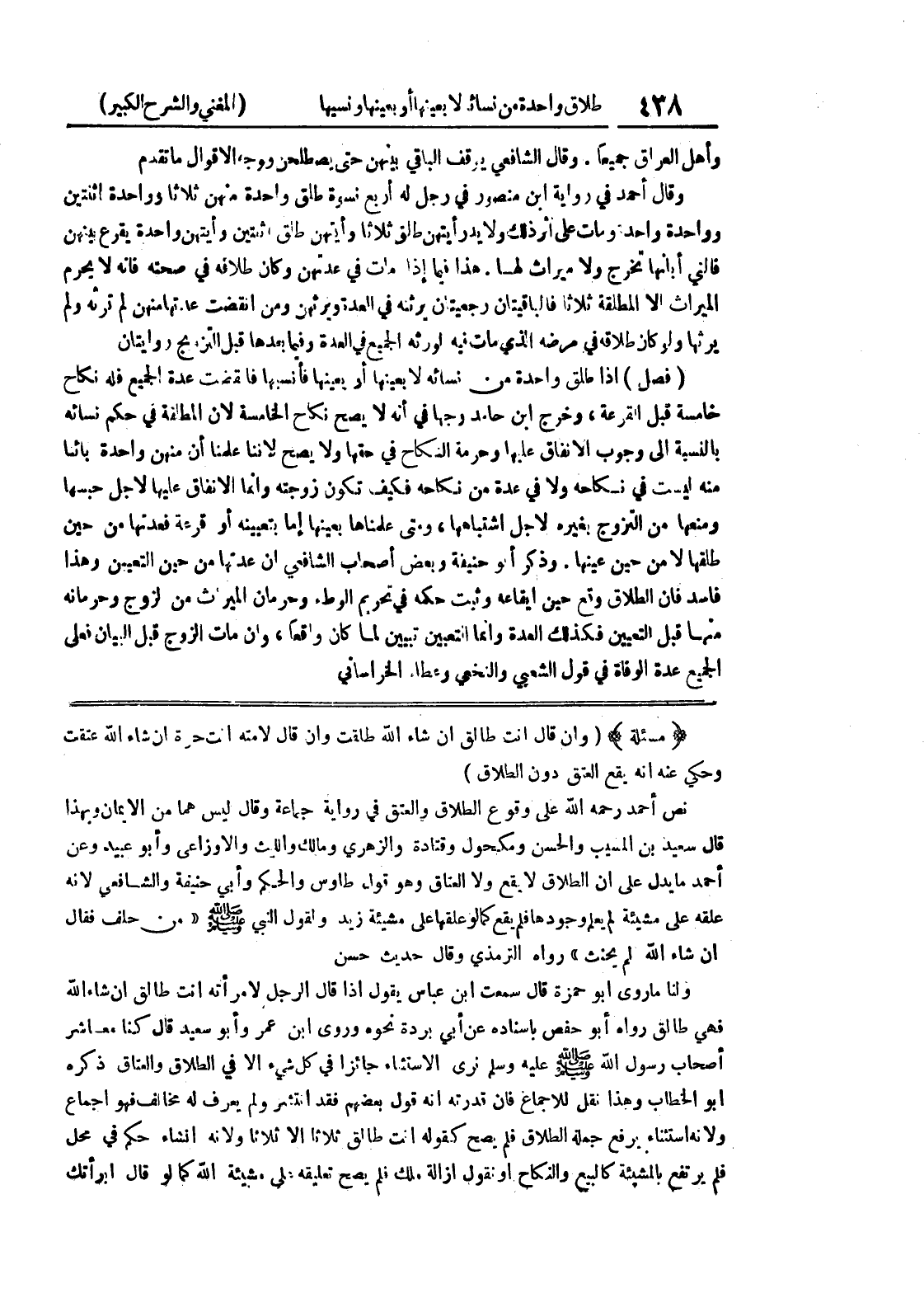 أبو الخطاب وهذا نقل للإجماع فإن قدرته أنه قول بعضهم فقد انتشر ولم يعرف له مخالف فهو اجماع ولأنه استثناء يرفع جملة الطلاق فلم يصح كقوله أنت طالق ثلاثا إلا ثلاثا ولأنه انشاء حكم في محل فلم يرتفع بالمشيئة كالبيع والنكاح أو نقول إزالة ملك فلم يصح تعليقه على مشيئة الله كما لو قال ابرأتك