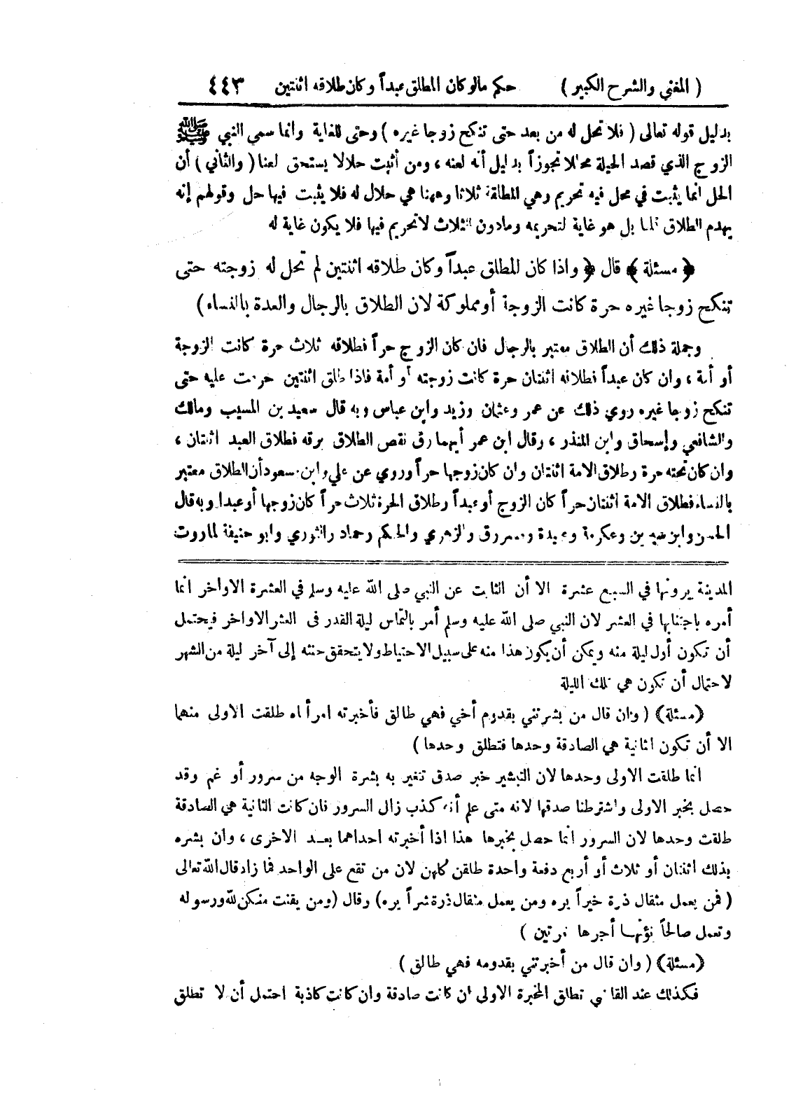 * (مسألة) * (وإن قال من بشرتني بقدوم أخي فهي طالق فأخبرته امرأتاه طلقت الأولى منهما إلا أن تكون الثانية هي الصادقة وحدها فتطلق وحدها) إنما طلقت الأولى وحدها لأن التبشير خبر صدق تغير به بشرة الوجه من سرور أو غم وقد حصل بخبر الأولى واشترطنا صدقها لانه متى علم أنه كذب زال السرور فإن كانت الثانية هي الصادقة طلقت وحدها لأن السرور إنما حصل بخبرها هذا إذا أخبرته إحداهما بعد الأخرى، وإن بشره بذلك اثنتان أو ثلاث أو أربع دفعة واحدة طلقن كلهن لأن من تقع على الواحد فما زاد قال الله تعالى (فمن يعمل مثقال ذرة خيرا يره ومن يعمل مثقال ذرة شرا يره) وقال (ومن يقنت منكن لله ورسوله وتعمل صالحا نؤتها أجرها مرتين) * (مسألة) * (وإن قال من أخبرتني بقدومه فهي طالق) فكذلك عند القاضي تطلق المخبرة الأولى إن كانت صادقة وإن كانت كاذبة احتمل أن لا تطلق