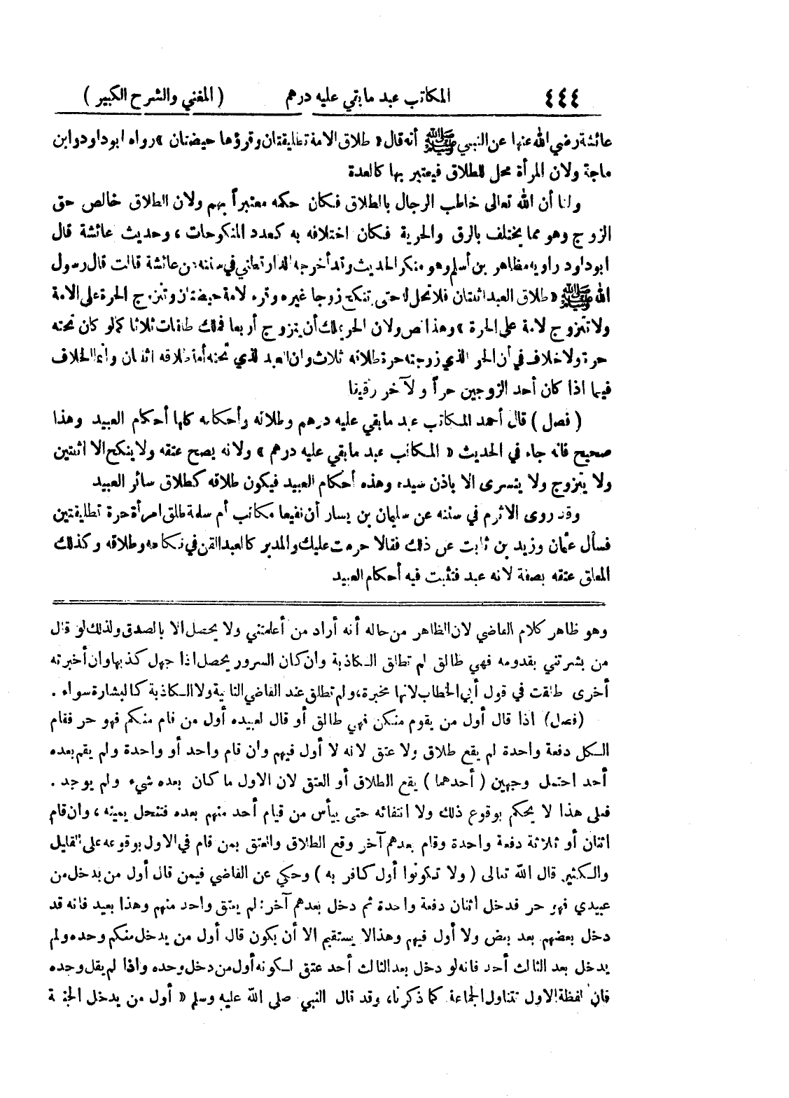 (فصل) إذا قال أول من يقوم منكن فهي طالق أو قال لعبيده أول من قام منكم فهو حر فقام الكل دفعة واحدة لم يقع طلاق ولا عتق لأنه لا أول فيهم وإن قام واحد أو واحدة ولم يقم بعد أحد احتمل وجهين (أحدهما) يقع الطلاق أو العتق لأن الأول ما كان بعده شئ ولم يوجد.