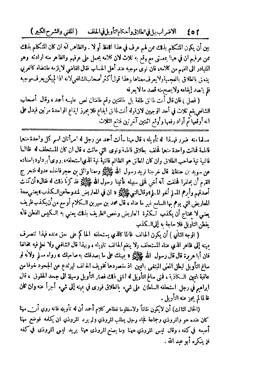 (الحال الثالث) أن لا يكون ظالماً ولا مظلوماً فظاهر كلام أحمد أن له تأويله فإنه روي أن مهنا كان عنده هو والمروذي وجماعة فجاء رجل يطلب المروذي ولم يرد المروذي أن يكلمه فوضع مهنا أصبعه في كفه، وقال ليس المروذي ههنا وما يصنع المروذي ههنا يريد ليس المروذي في كفه فلم ينكره أبو عبد الله.