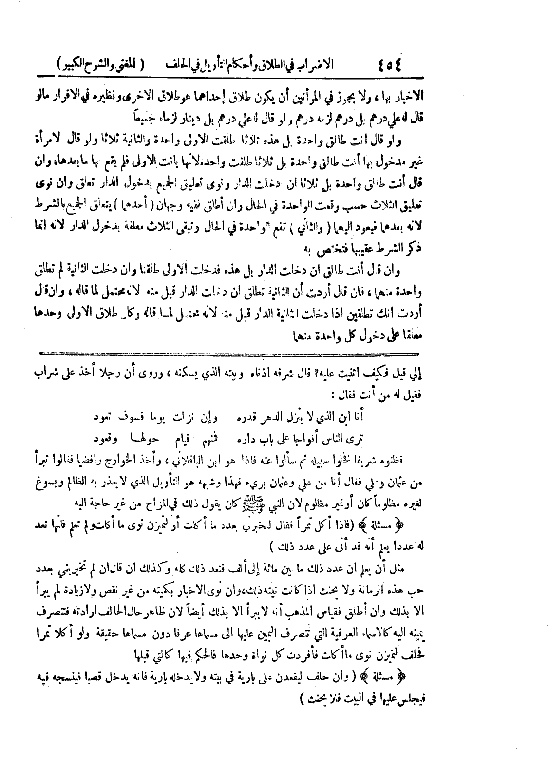 إلي قيل فكيف اثنيت عليه؟ قال شرفه اذناه وبيته الذي يسكنه، وروي ان رجلاً أخذ على شراب فقيل له من أنت فقال: أنا ابن الذي لا ينزل الدهر قدره * وإن نزلت يوماً فسوف تعود ترى الناس أفواجاً على باب داره * فمنهم قيام حولها وقعود فظنوه شريفاً فخلوا سبيله ثم سألوا عنه فإذا هو ابن الباقلاني، وأخذ الخوارج رافضياً فقالوا تبرأ من عثمان علي فقال أنا من علي وعثمان برئ فهذا وشبهه هو التأويل الذي لا يعذر به الظالم ويسوغ لغيره مظلوماً كان أو غير مظلوم لأن النبي صلى الله عليه وسلم كان يقول ذلك في المزاح من غير حاجة إليه * (مسألة) * (فإذا أكل تمراً فقال لتخبرني بعدد ما أكلت أو لتميزن نوى ما أكلت ولم تعلم فإنها تعد له عدداً يعلم أنه قد أتى على عدد ذلك) مثل أن يعلم أن عدد ذلك ما بين مائة إلى ألف فتعد ذلك كله وكذلك إن قال إن لم تخبريني بعدد حب هذه الرمانة ولا يحنث إذا كانت نيته ذلك، وإن نوى الاخبار بكميته من غير نقص ولا زيادة لم يبرأ إلا بذلك وإن أطلق فقياس المذهب أنه لا يبرأ إلا بذلك أيضاً لأن ظاهر حال الحالف إرادته فتنصرف يمينه إليه كالاسماء العرفية التي تنصرف اليمين عليها إلى مسماها عرفا دون مسماها حقيقة ولو أكلا تمراً فحلف لتميزن نوى ما أكلت فأفردت كل نواء وحدها فالحكم فيها كالتي قبلها