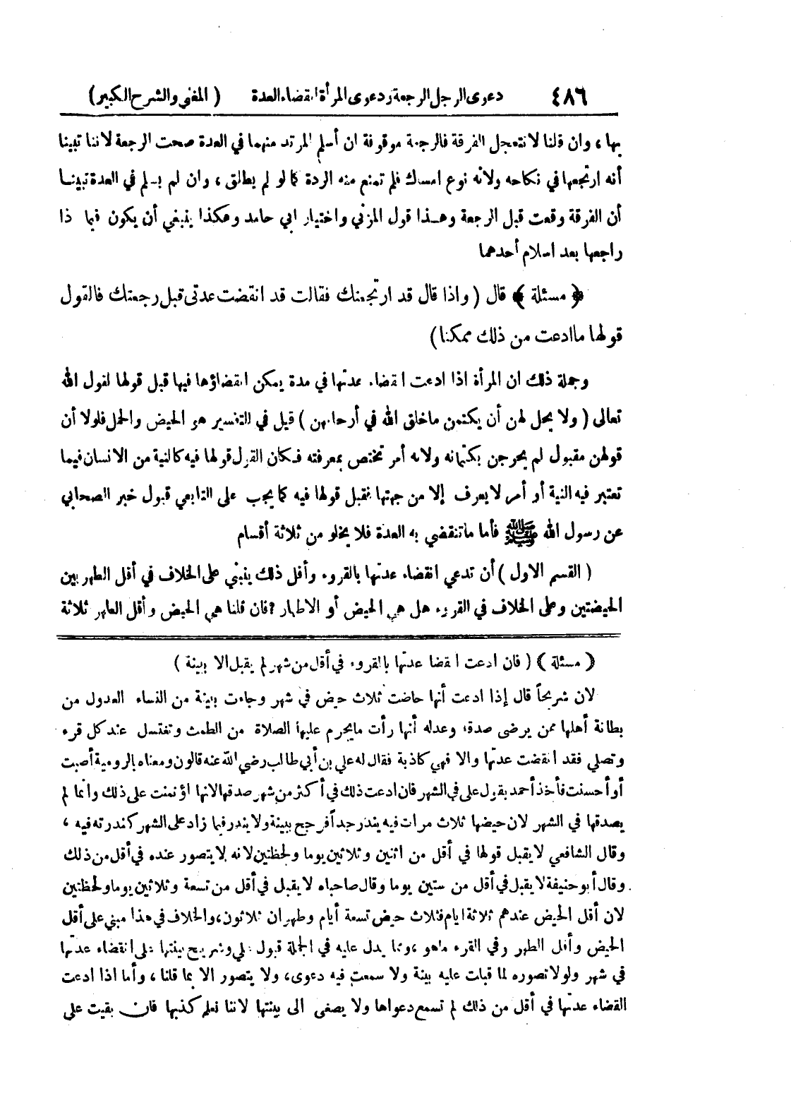 يصدقها في الشهر لأن حيضها ثلاث مرات فيه يندر جدا فرجع بينة ولا يندر فيما زاد على الشهر كندرته فيه، وقال الشافعي لا يقبل قولها في أقل من اثنين وثلاثين يوماً ولحظتين لأنه لا يتصور عنده في أقل من ذلك وقال أبو حنيفة لا يقبل في أقل من ستين يوماً وقال صاحباه لا يقبل في أقل من تسعة وثلاثين يوماً ولحظتين لأن أقل الحيض عندهم ثلاثة أيام فثلاث حيض تسعة أيام وطهران ثلاثون، والخلاف في هذا مبني على أقل الحيض وأقل الطهر وفي القرء ما هو، ومما يدل عليه في الجملة قبول علي وشريح بينتها على انقضاء عدتها في شهر ولولا تصوره لما قبلت عليه بينة ولا سمعت فيه دعوى، ولا يتصور إلا بما قلنا، وأما إذا ادعت القضاء عدتها في أقل من ذلك لم تسمع دعواها ولا يصغى إلى بينتها لاننا نعلم كذبها فإن بقيت على