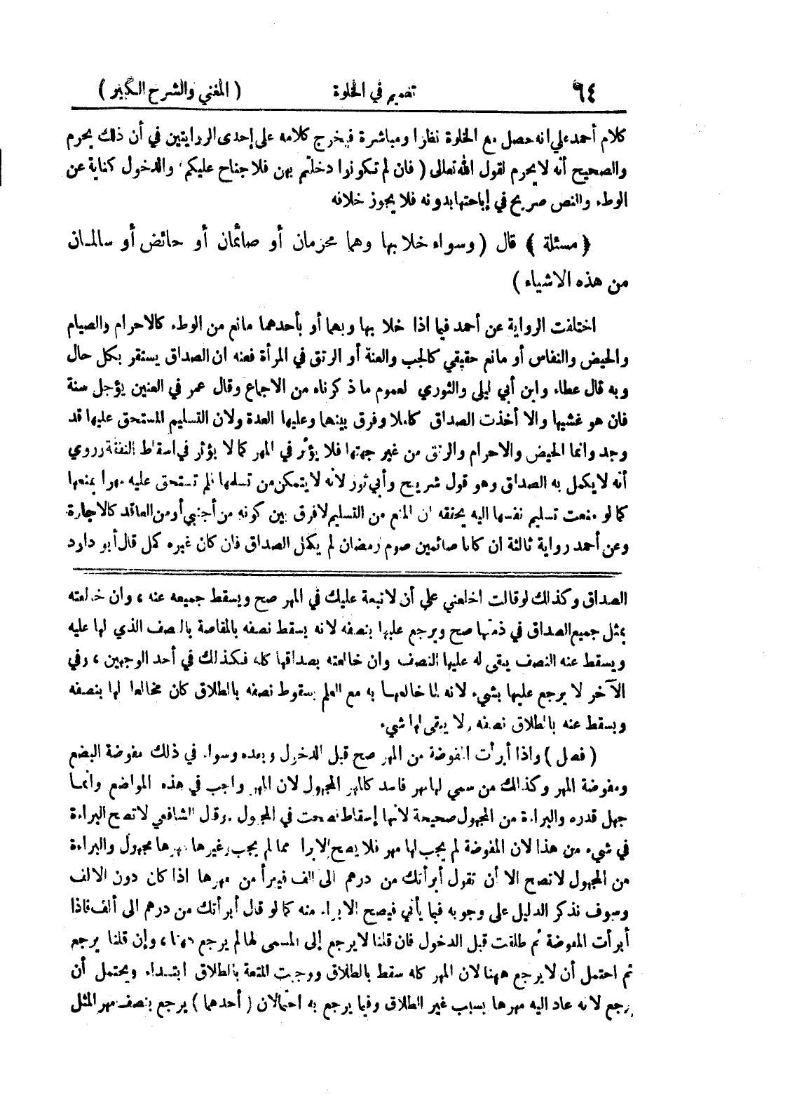 الصداق وكذلك لو قالت اخلعني على أن لاتبعة عليك في المهر صح ويسقط جميعه عنه، وإن خالعته بمثل جميع الصداق في ذمتها صح ويرجع عليها بنصفه لأنه يسقط نصفه بالمقاصة بالنصف الذي لها عليه ويسقط عنه النصف يبقى له عليها النصف وإن خالعته بصداقها كله فكذلك في أحد الوجهين، وفي الآخر لا يرجع عليها بشئ لأنه لما خالعها به مع العلم بسقوط نصفه بالطلاق كان مخالعاً لها بنصفه ويسقط عنه بالطلاق نصفه ولا يبقى لها شئ (فصل) وإذا أبرأت المفوضة من المهر صح قبل الدخول وبعده وسواء في ذلك مفوضة البضع ومفوضة المهر وكذلك من سمي لها مهر فاسد كالمهر المجهول لأن المهر واجب في هذه المواضع وإنما جهل قدره والبراءة من المجهول صحيحة لأنها إسقاط فصحت في المجهول.