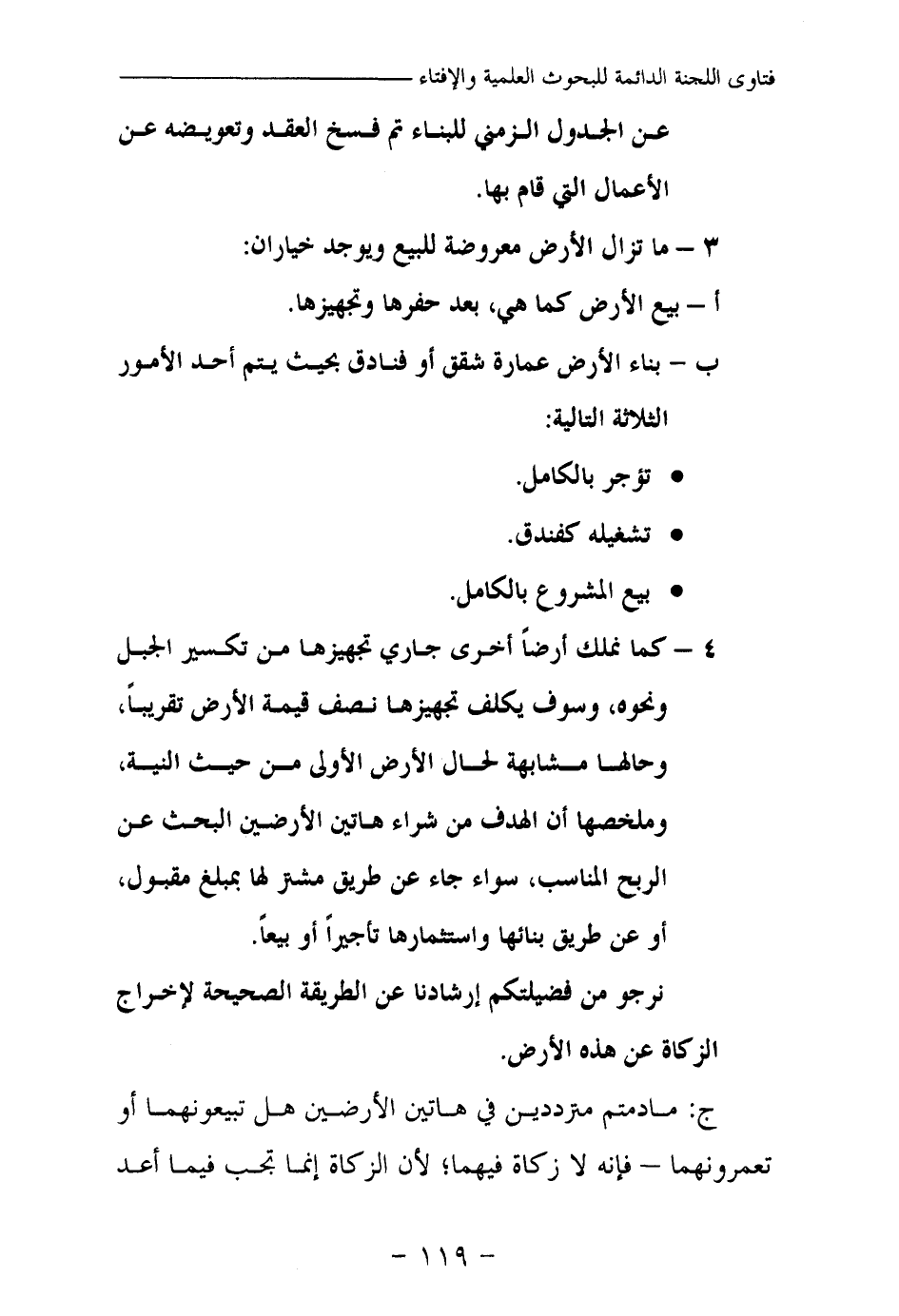 ج: ما دمتم مترددين في هاتين الأرضين هل تبيعونهما أو تعمرونهما – فإنه لا زكاة فيهما؛ لأن الزكاة إنما تجب فيما أعد