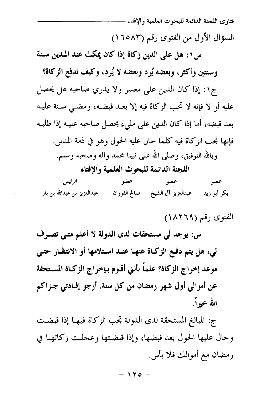 س1: هل على الدين زكاة إذا كان يمكث عند المدين سنة وسنتين وأكثر، وبعضه يرد وبعضه لا يرد، وكيف تدفع الزكاة؟