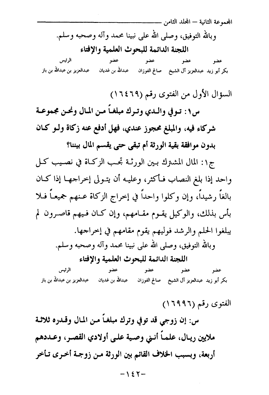بكر أبو زيد ... عبد العزيز آل الشيخ ... صالح الفوزان ... عبد الله بن غديان ... عبد العزيز بن عبد الله بن باز
