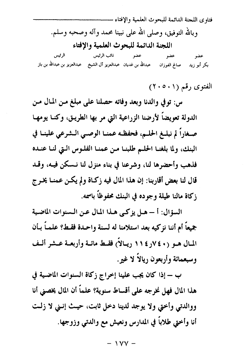 السؤال: أ- هل يزكى هذا المال عن السنوات الماضية جميعا أم أننا نزكيه بعد استلامنا له لسنة واحدة فقط؟ علما بأن المال هو (114.740 ريالا) فقط مائة وأربعة عشر ألف وسبعمائة وأربعون ريالا لا غير.