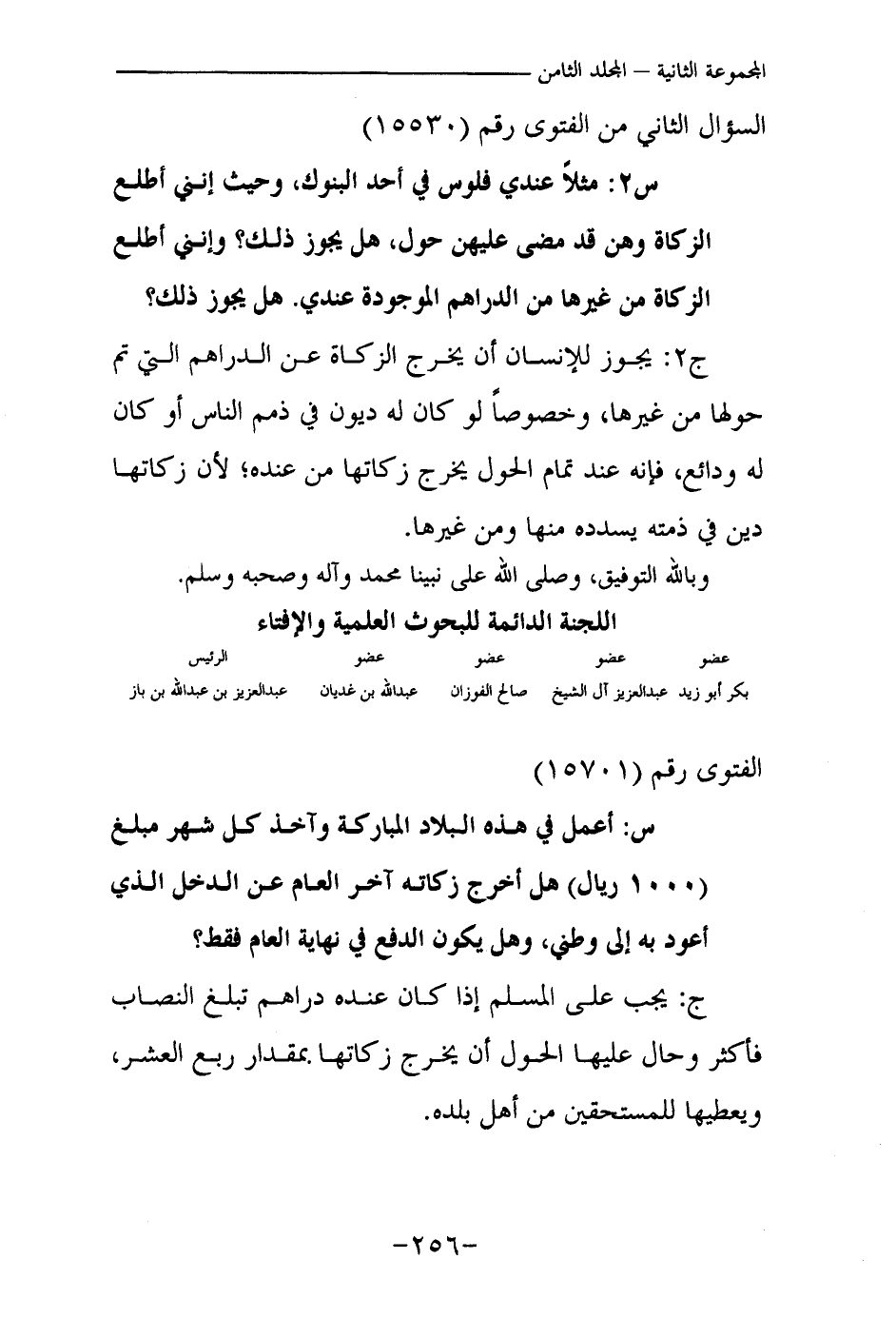 س2: مثلا عندي فلوس في أحد البنوك، وحيث إنني أطلع الزكاة وهن قد مضى عليهن حول، هل يجوز ذلك؟ وإنني أطلع الزكاة من غيرها من الدراهم الموجودة عندي. هل يجوز ذلك؟