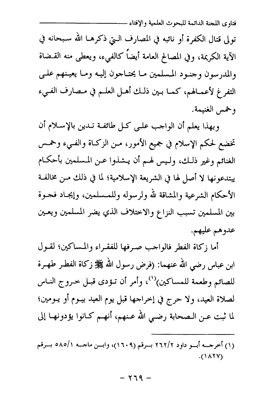 (¬1) أخرجه أبو داود 2\262 برقم (1609) ، وابن ماجه 1\585 برقم (1827) .