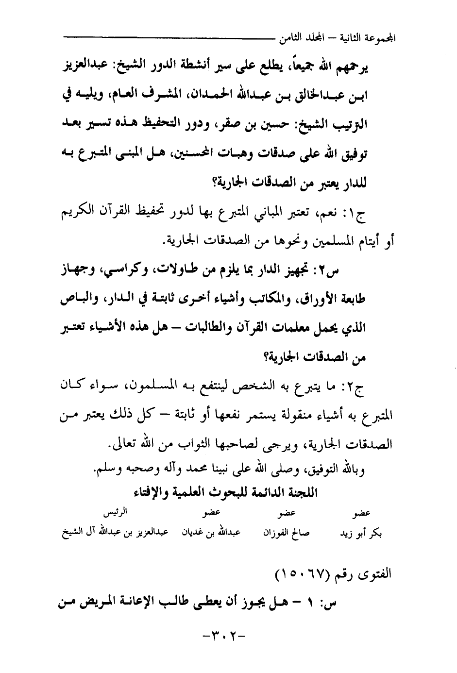يرحمهم الله جميعا، يطلع على سير أنشطة الدور الشيخ: عبد العزيز بن عبد الخالق بن عبد الله الحمدان، المشرف العام، ويليه في الترتيب الشيخ: حسين بن صقر، ودور التحفيظ هذه تسير بعد توفيق الله على صدقات وهبات المحسنين، هل المبنى المتبرع به للدار يعتبر من الصدقات الجارية.