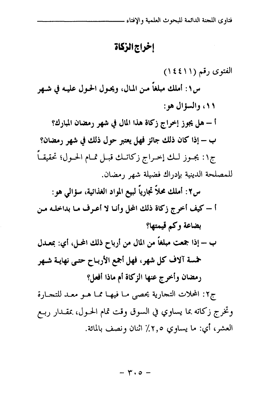 س1: أملك مبلغا من المال، ويحول الحول عليه في شهر 11، والسؤال هو: