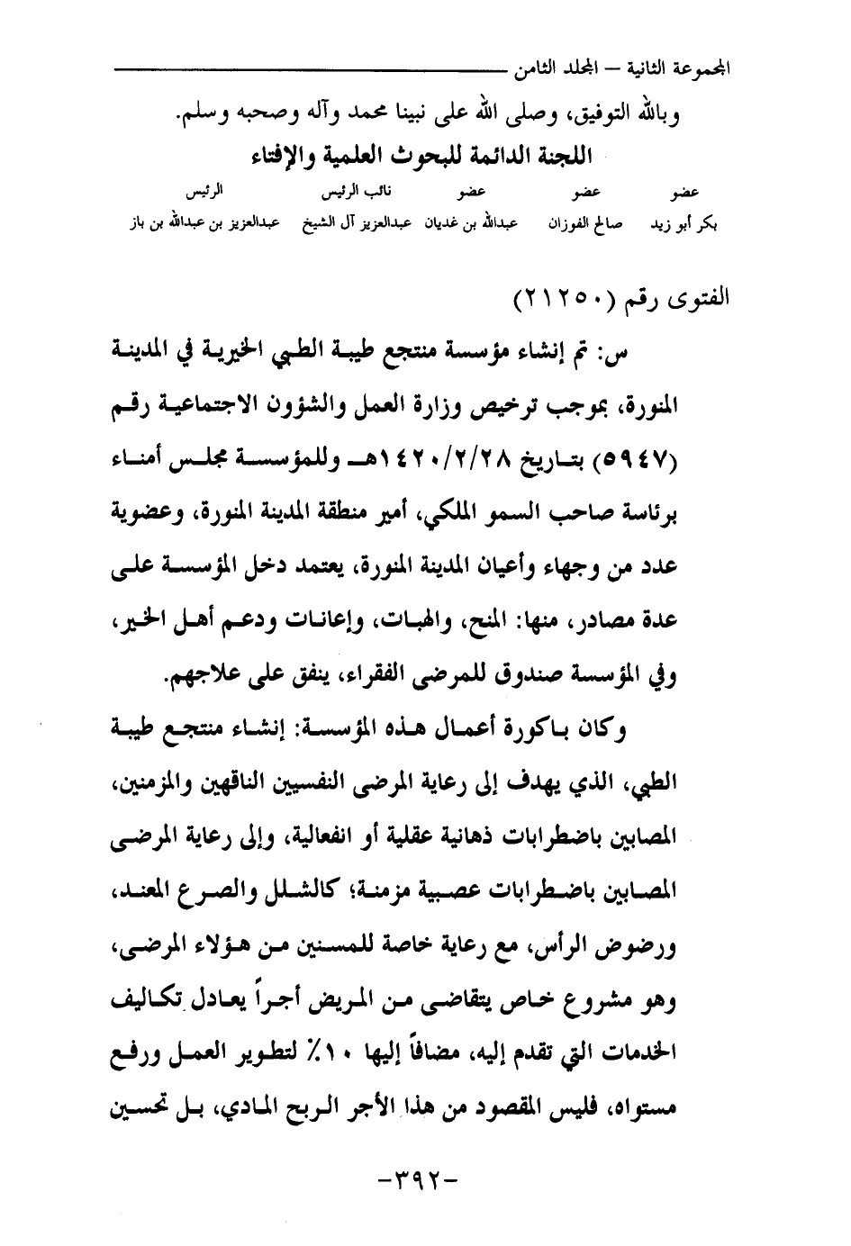 س: تم إنشاء مؤسسة منتجع طيبة الطبي الخيرية في المدينة المنورة، بموجب ترخيص وزارة العمل والشؤون الاجتماعية رقم (5947) بتاريخ 28 / 2 / 1420هـ وللمؤسسة مجلس أمناء برئاسة صاحب السمو الملكي، أمير منطقة المدينة المنورة، وعضوية عدد من وجهاء وأعيان المدينة المنورة، يعتمد دخل المؤسسة على عدة مصادر، منها: المنح، والهبات، وإعانات ودعم أهل الخير، وفي المؤسسة صندوق للمرضى الفقراء، ينفق على علاجهم.