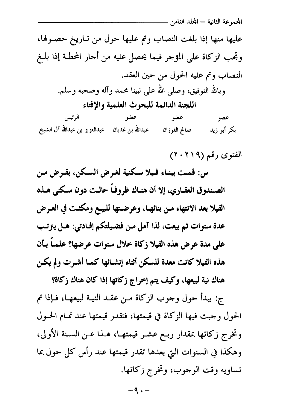 س: قمت ببناء فيلا سكنية لغرض السكن، بقرض من الصندوق العقاري، إلا أن هناك ظروفا حالت دون سكني هذه الفيلا بعد الانتهاء من بنائها، وعرضتها للبيع ومكثت في العرض عدة سنوات ثم بيعت، لذا آمل من فضيلتكم إفادتي: هل يترتب على مدة عرض هذه الفيلا زكاة خلال سنوات عرضها؟ علما بأن هذه الفيلا كانت معدة للسكن أثناء إنشائها كما أشرت ولم يكن هناك نية لبيعها، وكيف يتم إخراج زكاتها إذا كان هناك زكاة؟