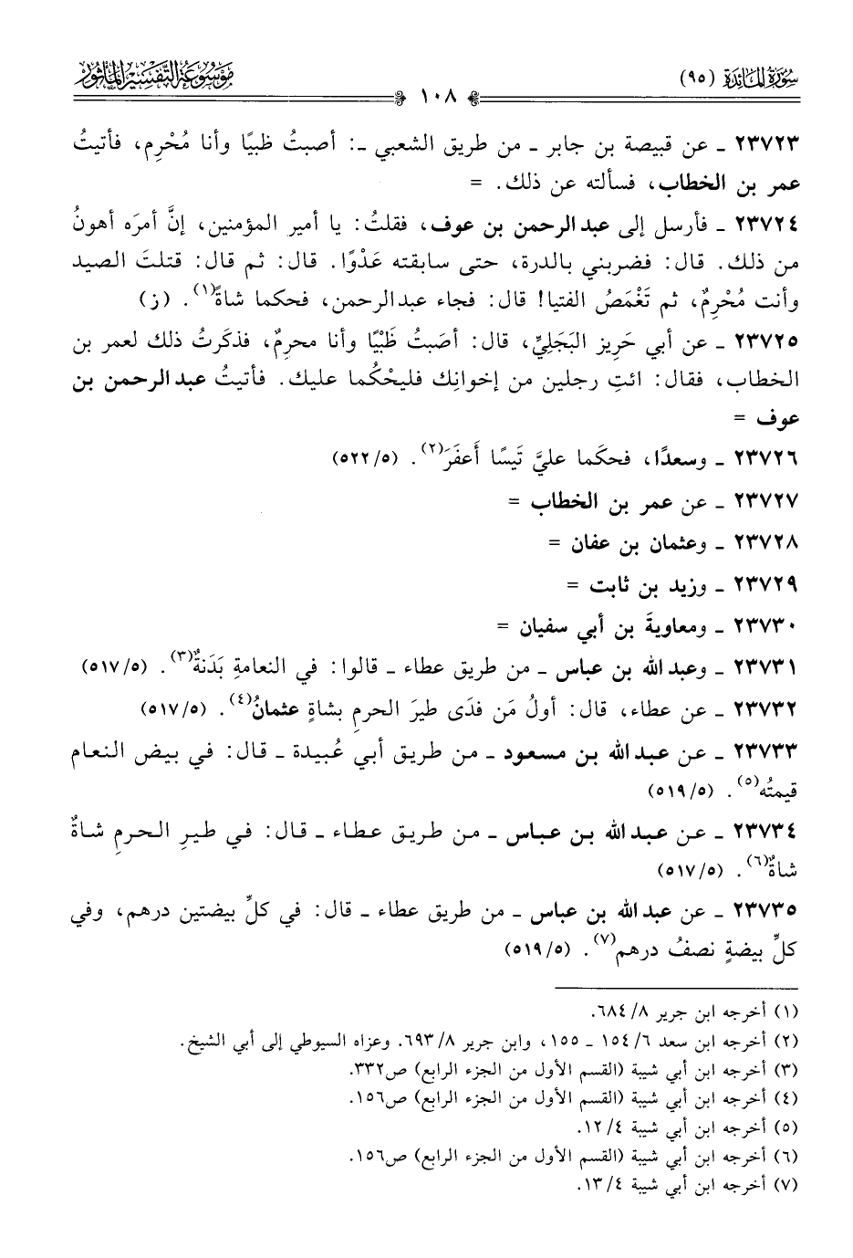 ٢٣٧٢٥ - عن أبي حَرِيز البَجَلِيِّ، قال: أصَبتُ ظَبْيًا وأنا محرِمٌ، فذكَرتُ ذلك لعمر بن الخطاب، فقال: ائتِ رجلين من إخوانِك فليحْكُما عليك. فأتيتُ عبد الرحمن بن عوف =