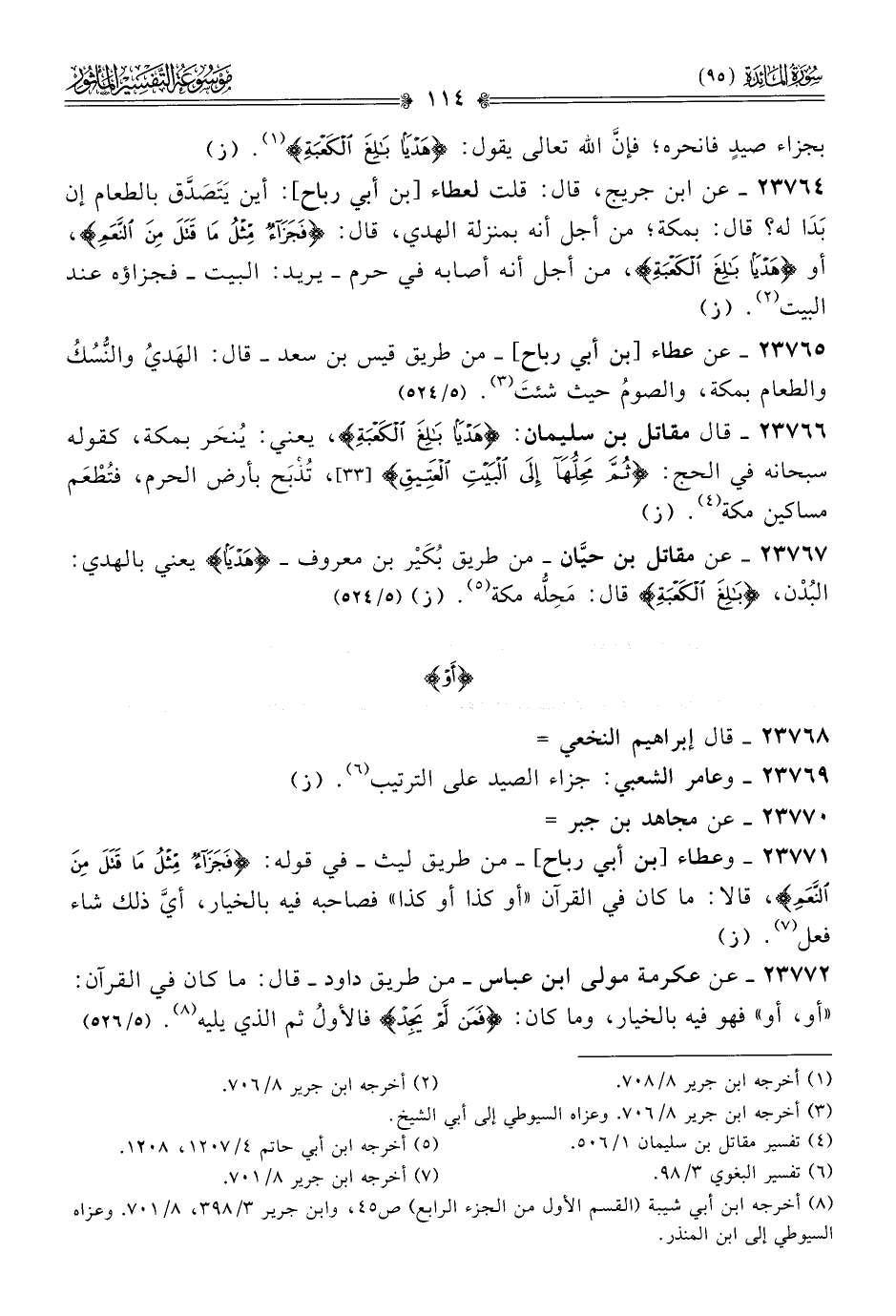 ٢٣٧٦٩ - وعامر الشعبي: جزاء الصيد على الترتيب (¬٦). (ز)