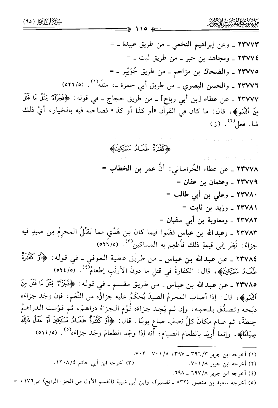 (¬٥) أخرجه سعيد بن منصور (٨٣٢ - تفسير)، وابن أبي شيبة (القسم الأول من الجزء الرابع) ص ١٧٦، وابن جرير ٨/ ٦٨٢، ٦٨٣ وابن أبي حاتم ٤/ ١٢٠٥، ١٢٠٨، والبيهقي في سننه ٥/ ١٨٦. وعزاه السيوطي إلى ابن المنذر، وأبي الشيخ.