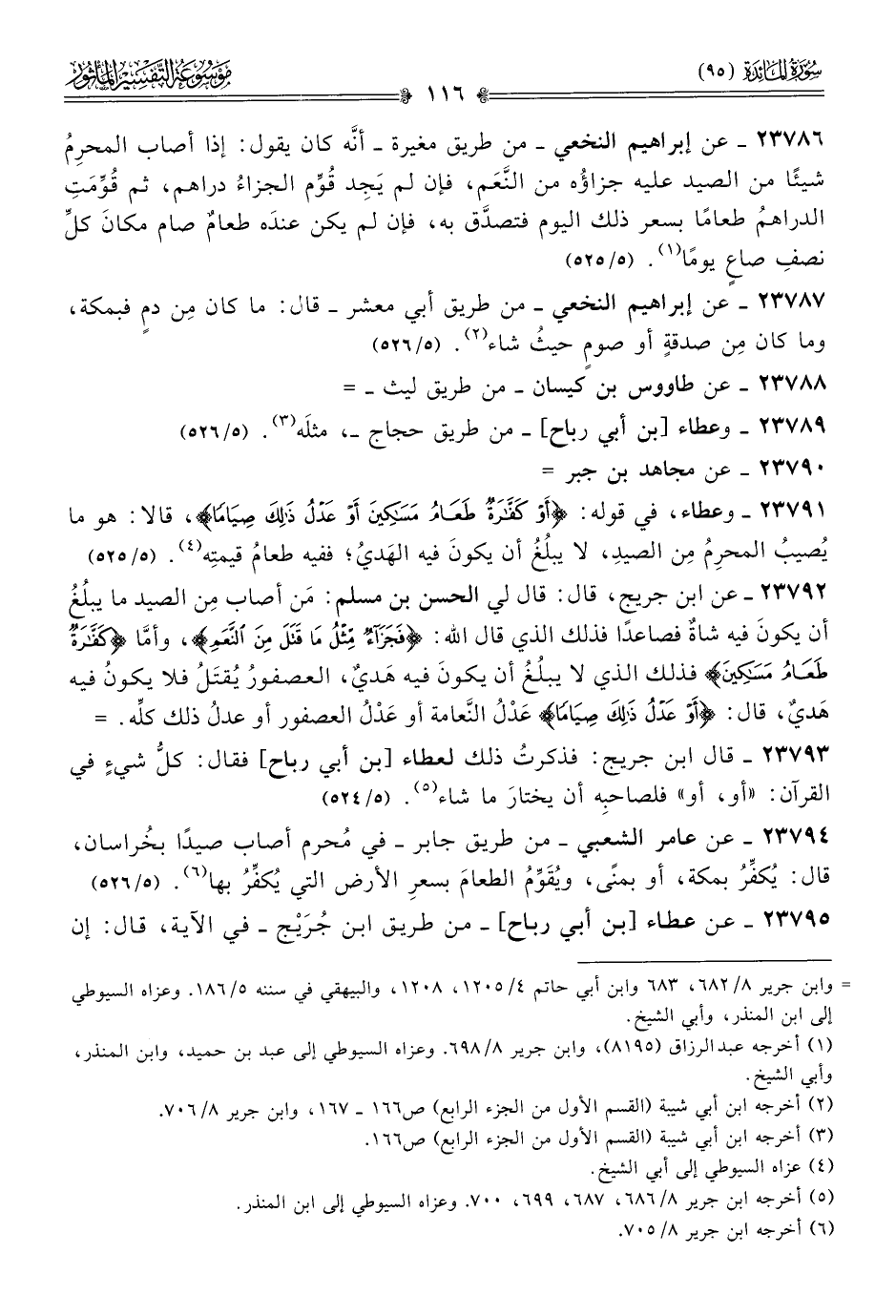 ٢٣٧٩٣ - قال ابن جريج: فذكرتُ ذلك لعطاء [بن أبى رباح] فقال: كلُّ شيءٍ في القرآن: «أو، أو» فلصاحبِه أن يختارَ ما شاء (¬٥). (٥/ ٥٢٤)