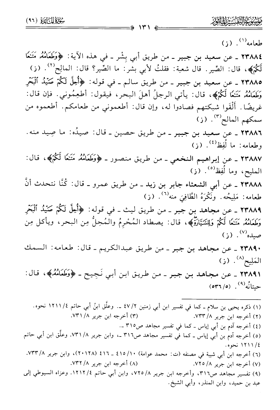 ٢٣٨٩١ - عن مجاهد بن جبر -من طريق ابن أبي نَجِيح- {وطعامه}، قال: حيتانُه (¬٩). (٥/ ٥٣٦)