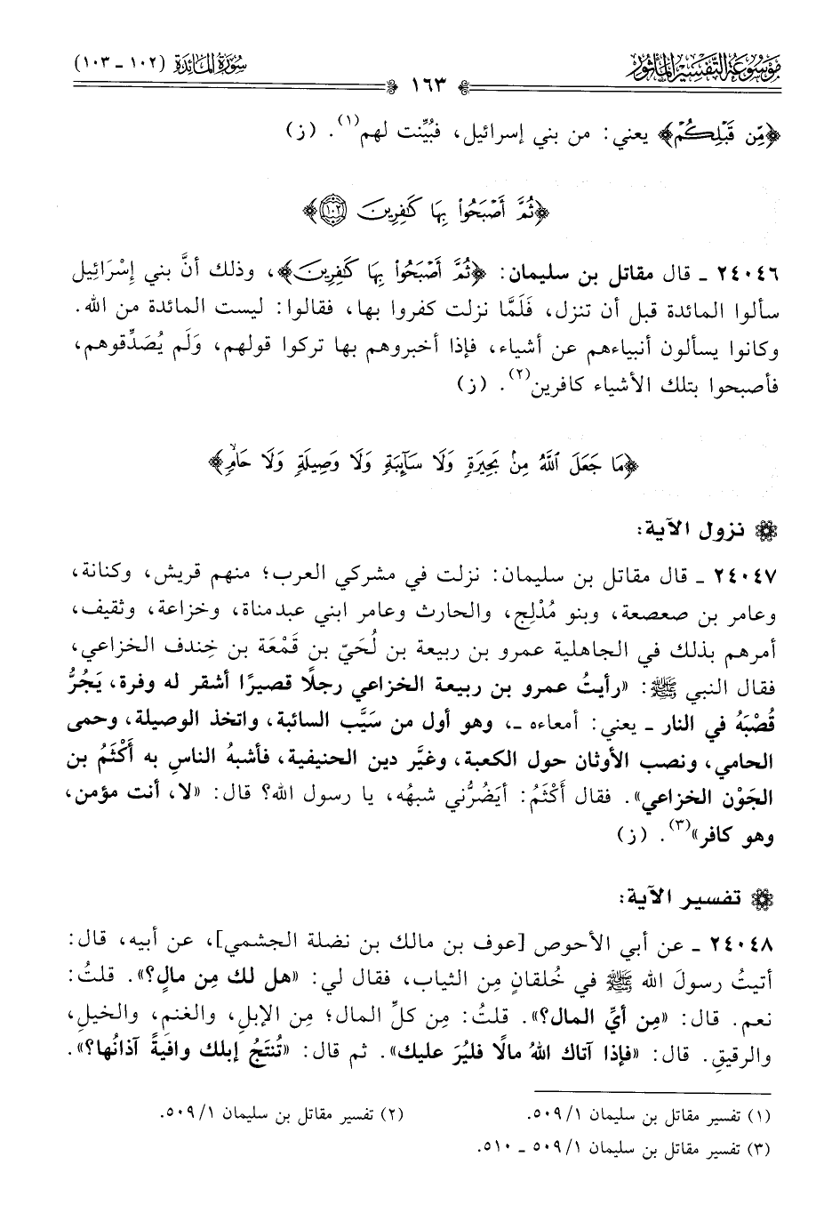 (¬٣) تفسير مقاتل بن سليمان ١/ ٥٠٩ - ٥١٠.