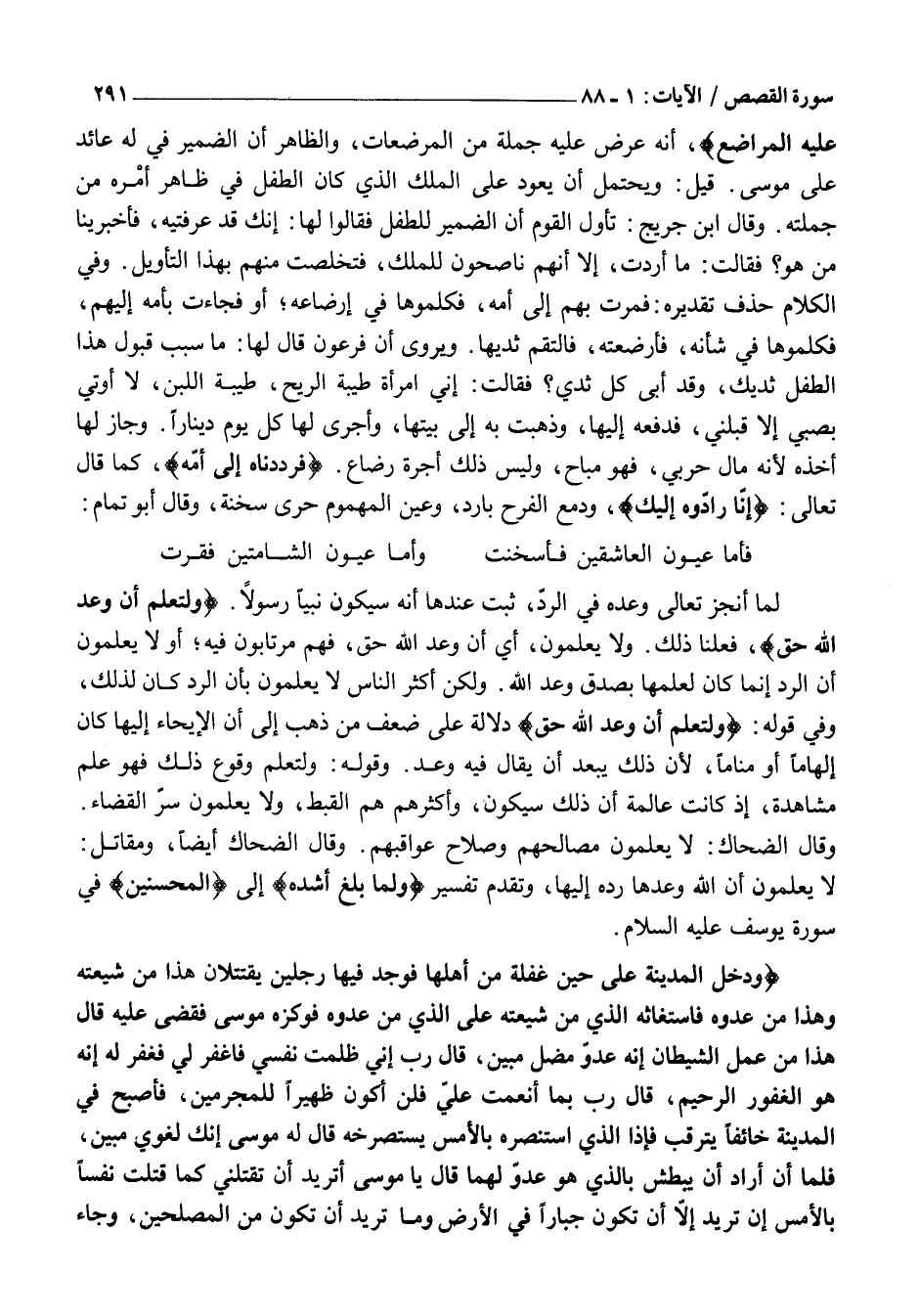 لَا يَعْلَمُونَ أَنَّ اللَّهَ وَعَدَهَا رَدَّهُ إِلَيْهَا، وَتَقَدَّمَ تَفْسِيرُ وَلَمَّا بَلَغَ أَشُدَّهُ إِلَى الْمُحْسِنِينَ فِي سُورَةِ يُوسُفَ عَلَيْهِ السَّلَامُ.