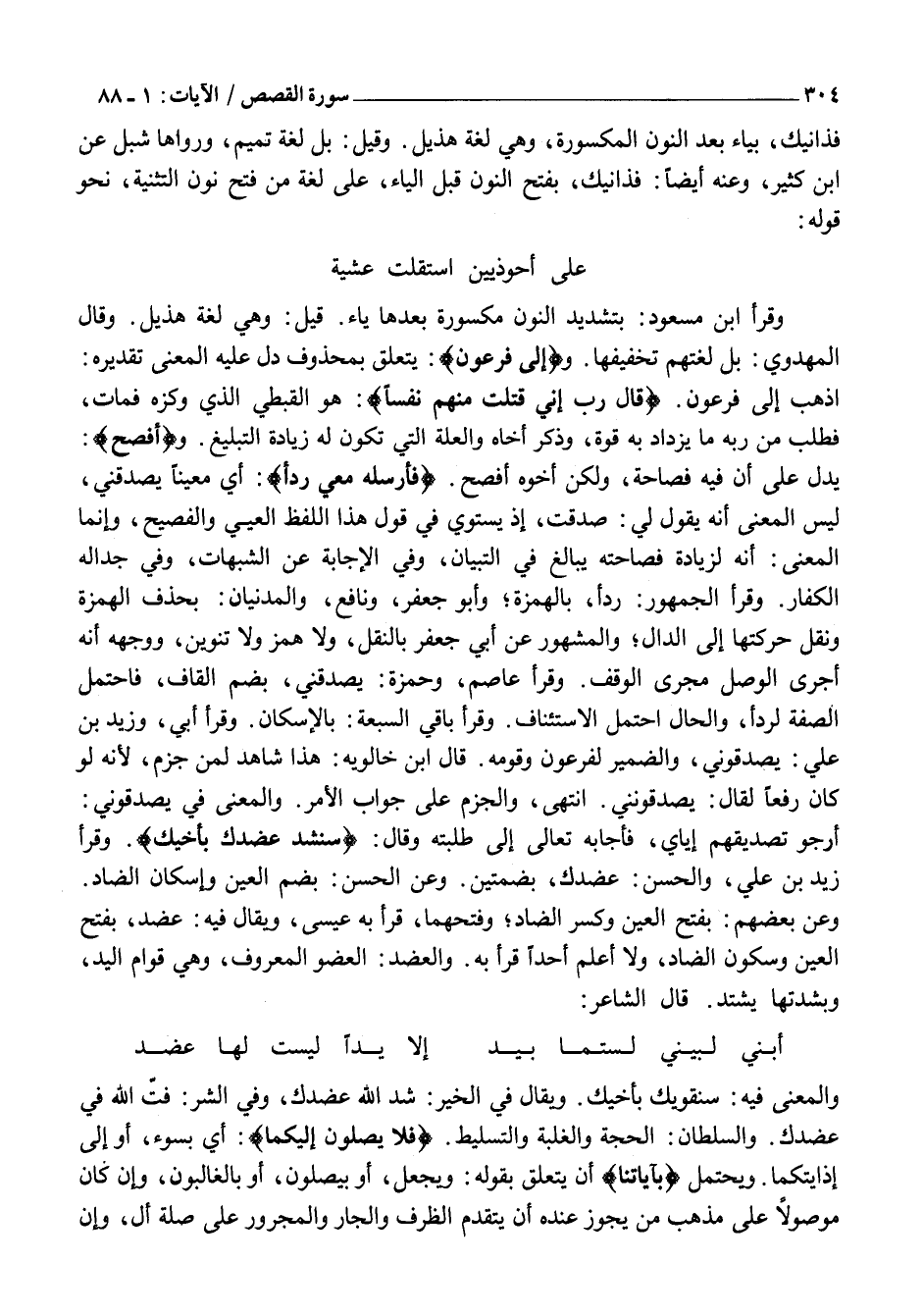 أَرْجُو تَصْدِيقَهُمْ إِيَّايَ، فَأَجَابَهُ تَعَالَى إِلَى طِلْبَتِهِ وَقَالَ: سَنَشُدُّ عَضُدَكَ بِأَخِيكَ. وَقَرَأَ زَيْدُ بْنُ عَلِيٍّ، وَالْحَسَنُ: عُضُدَكَ، بِضَمَّتَيْنِ. وَعَنِ الْحَسَنِ: بِضَمِّ الْعَيْنِ وَإِسْكَانِ الضَّادِ.