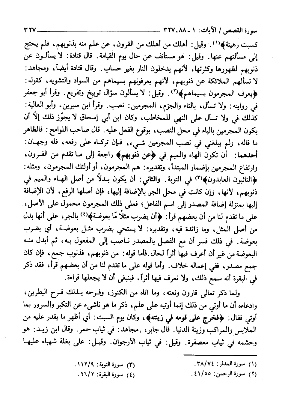 «1» . وَقِيلَ: أَهْلَكَ من أهلك من القرون، عَنْ عِلْمٍ مِنْهُ بِذُنُوبِهِمْ، فَلَمْ يَحْتَجْ إِلَى مَسْأَلَتِهِمْ عَنْهَا. وَقِيلَ: هُوَ مُسْتَأْنَفٌ عَنْ حَالِ يَوْمِ الْقِيَامَةِ. قَالَ قَتَادَةُ: لَا يُسْأَلُونَ عَنْ ذُنُوبِهِمْ لِظُهُورِهَا وَكَثْرَتِهَا، لِأَنَّهُمْ يَدْخُلُونَ النَّارَ بِغَيْرِ حِسَابٍ. وَقَالَ قَتَادَةُ أَيْضًا، وَمُجَاهِدٌ: