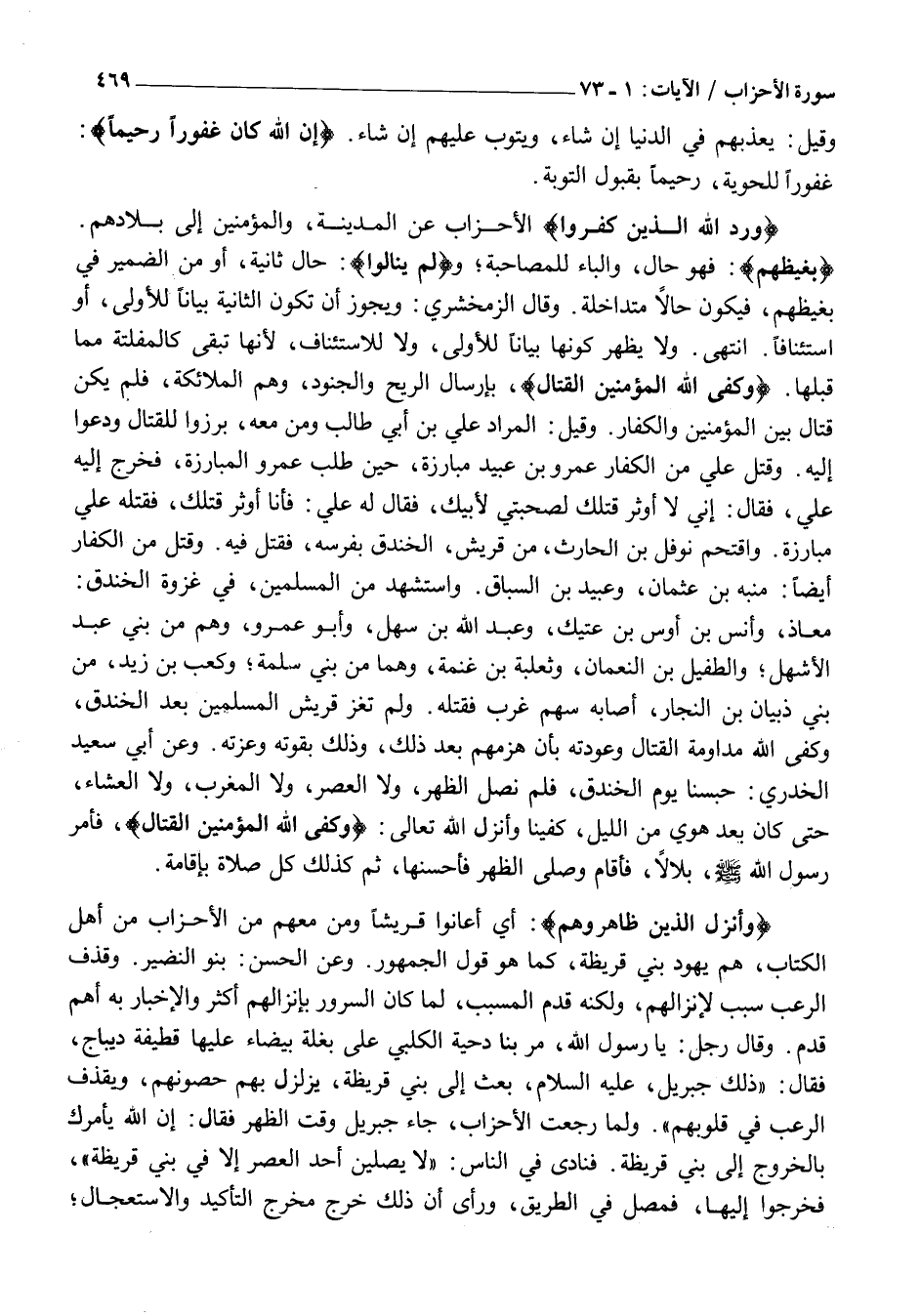 وَرَدَّ اللَّهُ الَّذِينَ كَفَرُوا الْأَحْزَابَ عَنِ الْمَدِينَةِ، وَالْمُؤْمِنِينَ إِلَى بِلَادِهِمْ.