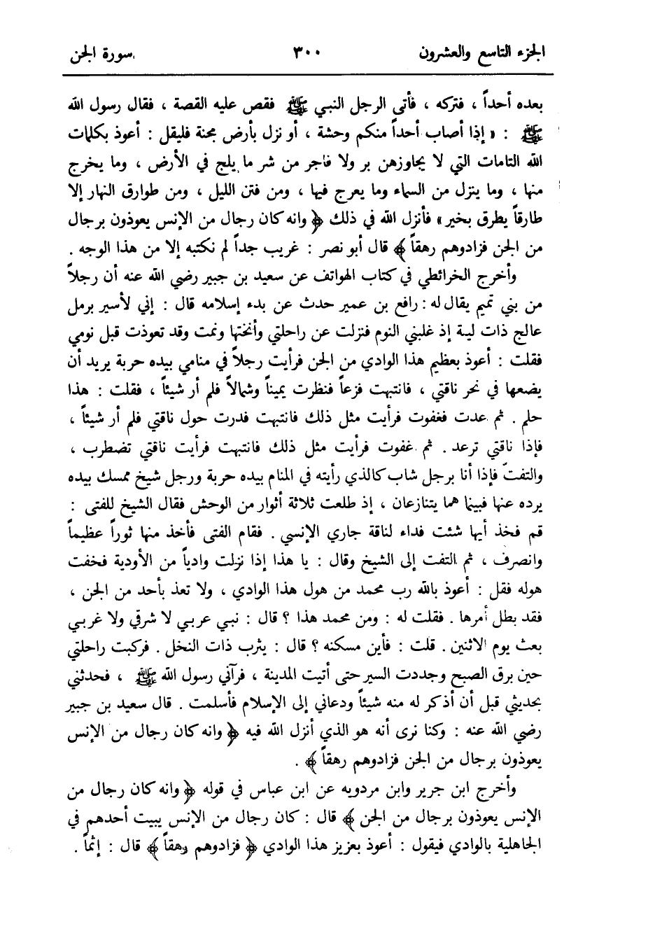 قَالَ سعيد بن جُبَير رَضِي الله عَنهُ: وَكُنَّا نرى أَنه هُوَ الَّذِي أنزل الله فِيهِ {وَأَنه كَانَ رجال من الإِنس يعوذون بِرِجَال من الْجِنّ فزادوهم رهقاً}