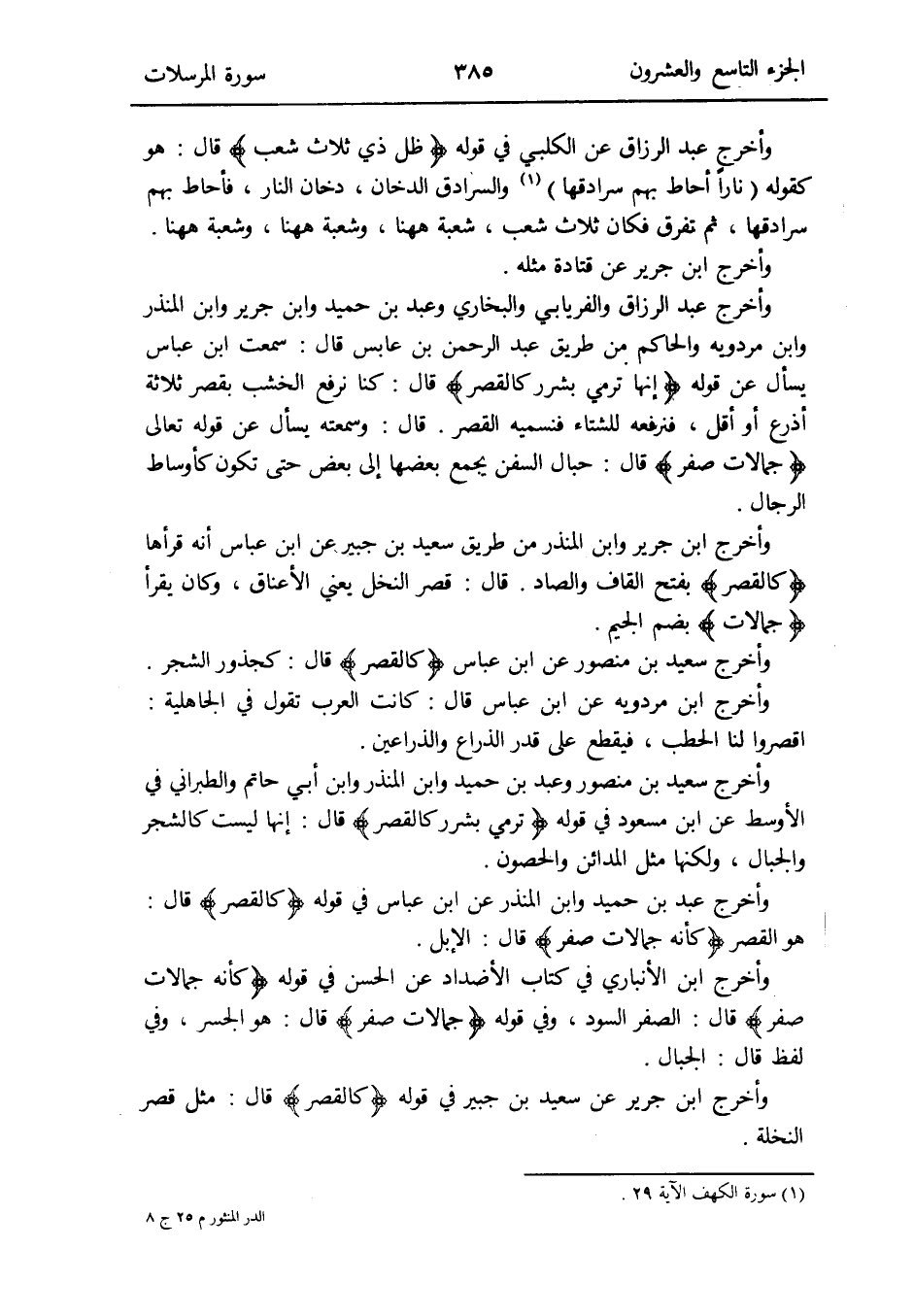 وَأخرج ابْن جرير عَن سعيد بن جُبَير فِي قَوْله: {كالقصر} قَالَ: مثل قصر النَّخْلَة