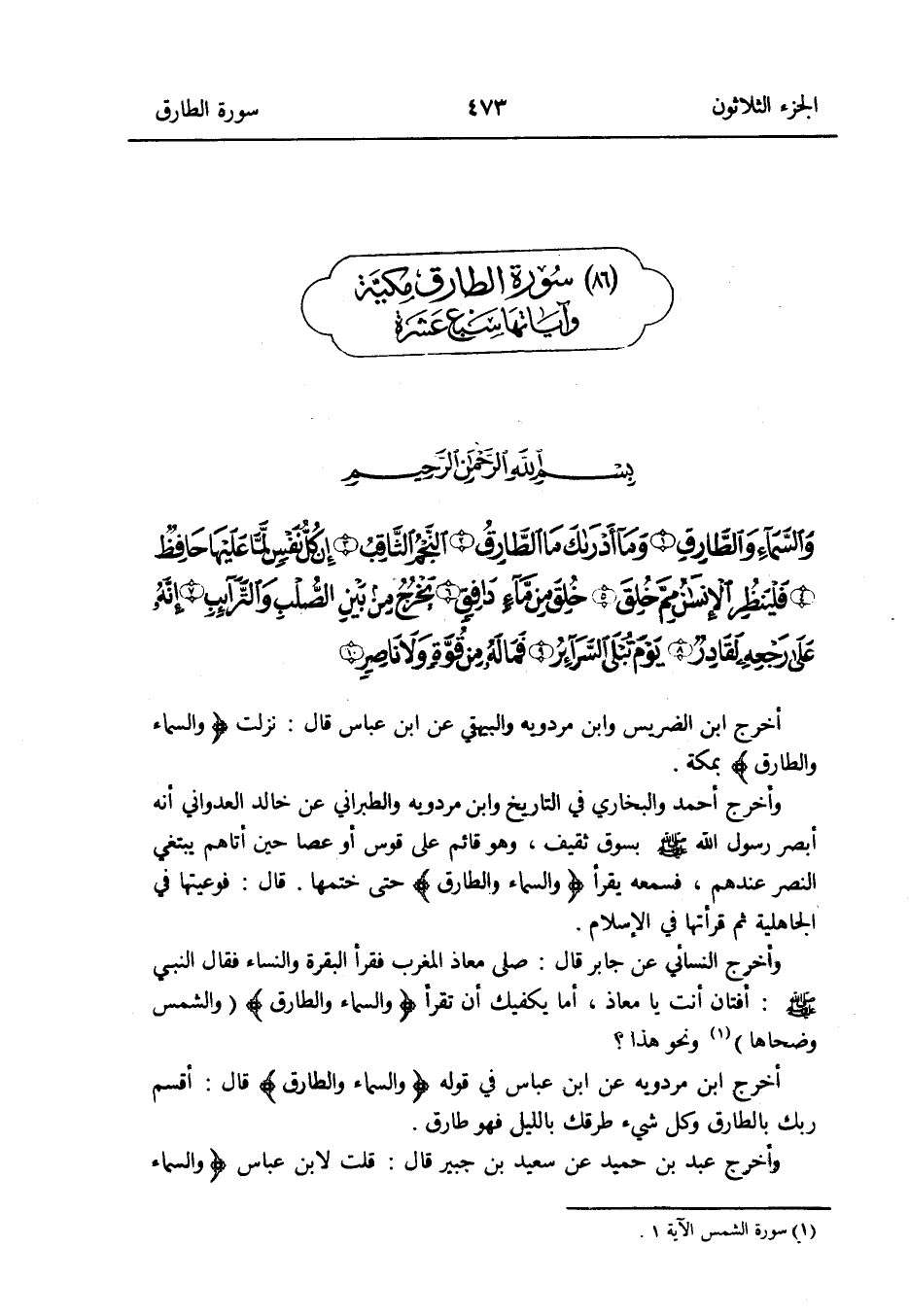 أخرج ابْن الضريس وَابْن مرْدَوَيْه وَالْبَيْهَقِيّ عَن ابْن عَبَّاس قَالَ: نزلت {وَالسَّمَاء والطارق} بِمَكَّة