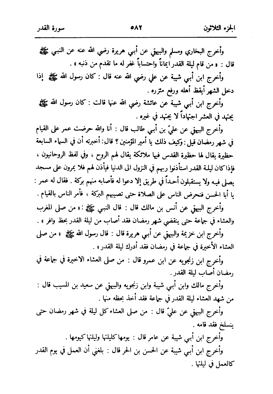 وَأخرج البُخَارِيّ وَمُسلم وَالْبَيْهَقِيّ عَن أبي هُرَيْرَة رَضِي الله عَنهُ عَن النَّبِي صلى الله عَلَيْهِ وَسلم قَالَ: من قَامَ لَيْلَة الْقدر إِيمَانًا واحتساباً غفر لَهُ مَا تقدم من ذَنبه
