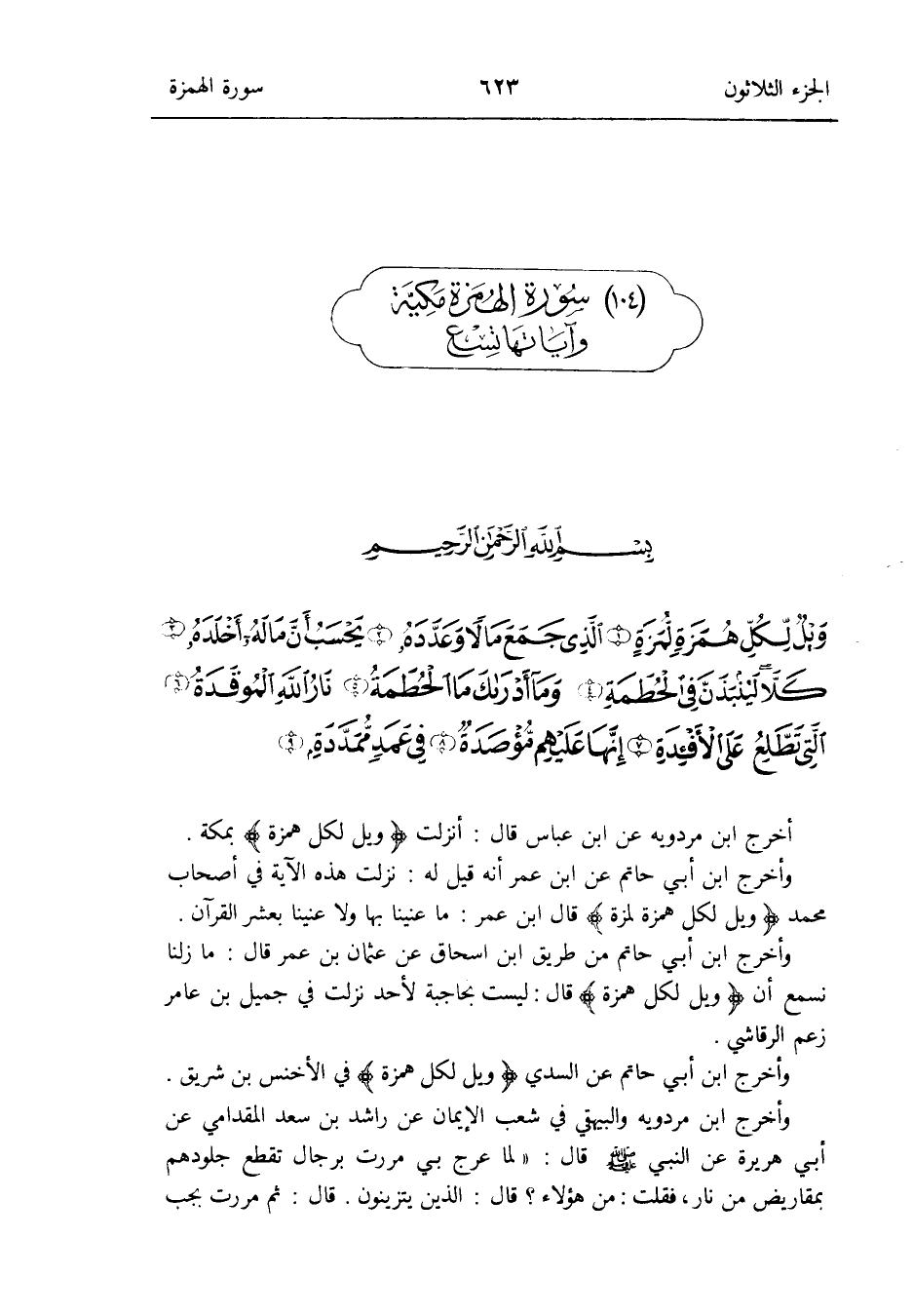 أخرج ابْن مرْدَوَيْه عَن ابْن عَبَّاس قَالَ: أنزلت {ويل لكل همزَة} بِمَكَّة