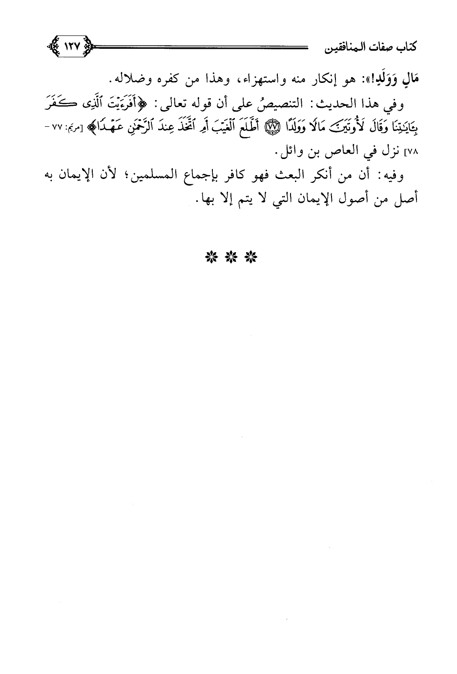 وفيه: أن من أنكر البعث فهو كافر بإجماع المسلمين؛ لأن الإيمان به أصل من أصول الإيمان التي لا يتم إلا بها.