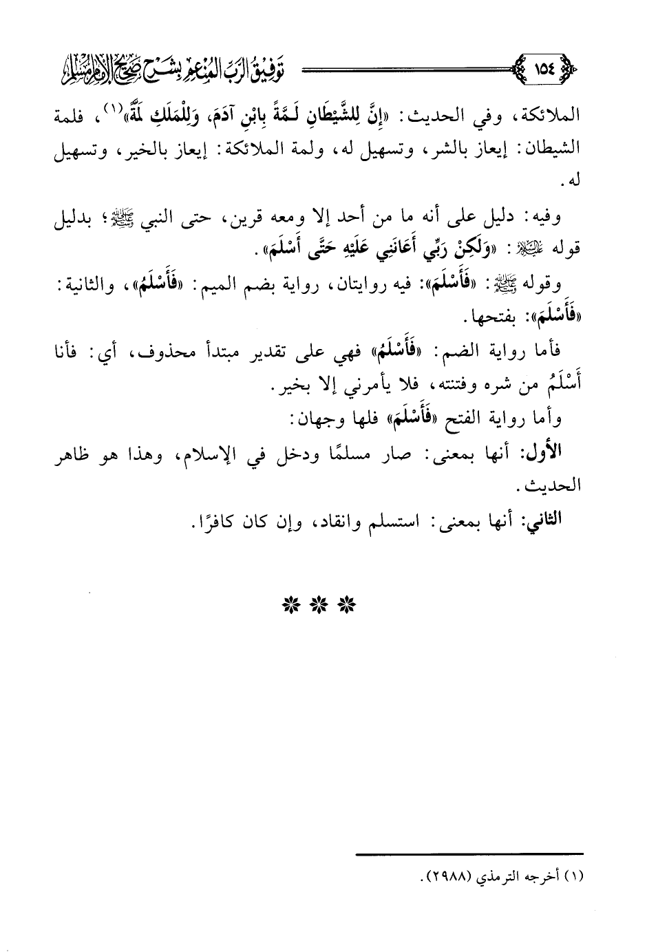 وقوله صلى الله عليه وسلم: ((فَأَسْلَمَ)): فيه روايتان، رواية بضم الميم: ((فَأَسْلَمُ))، والثانية: ((فَأَسْلَمَ)): بفتحها.